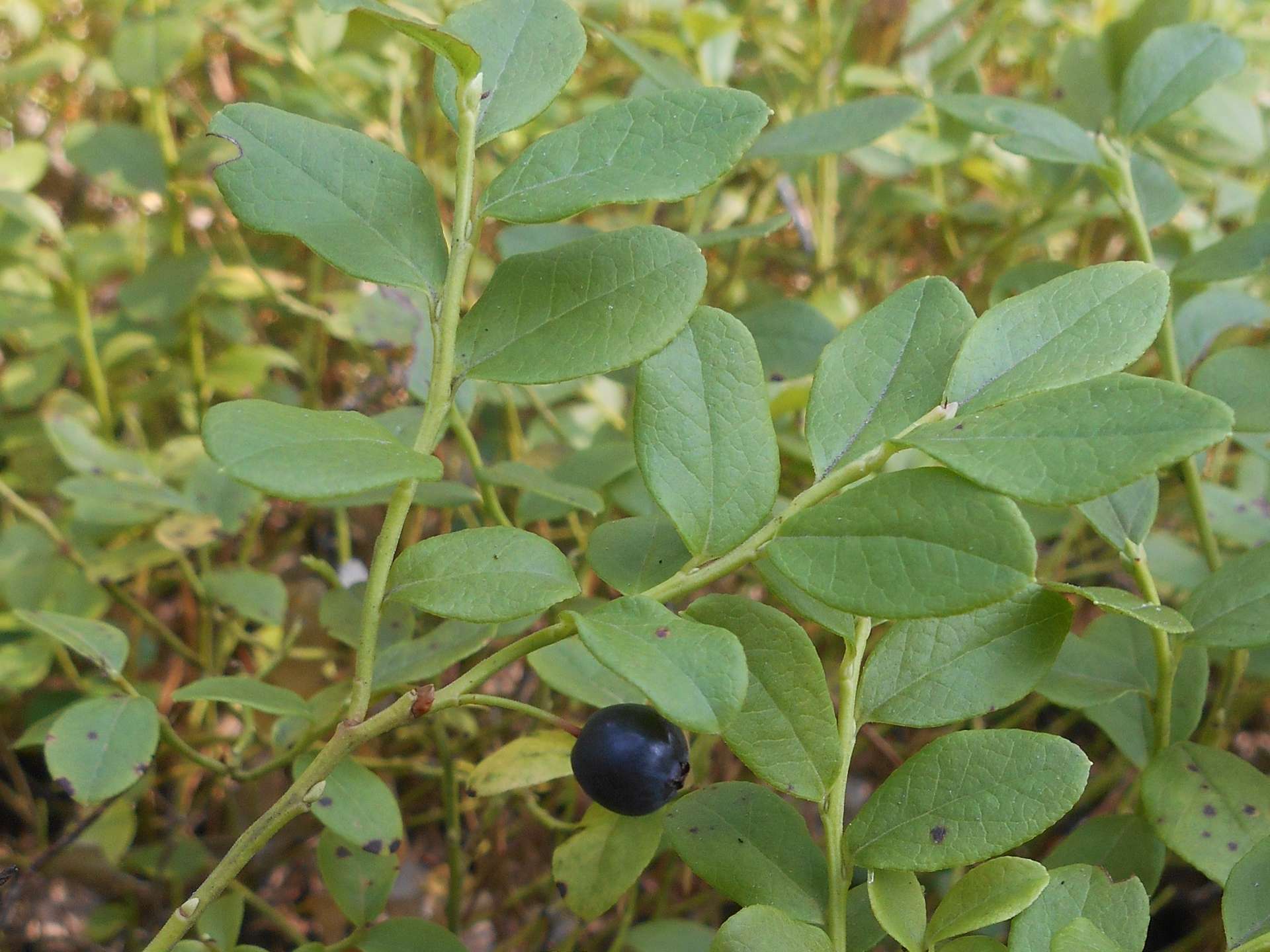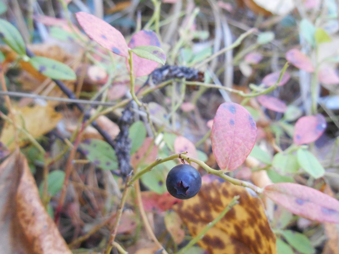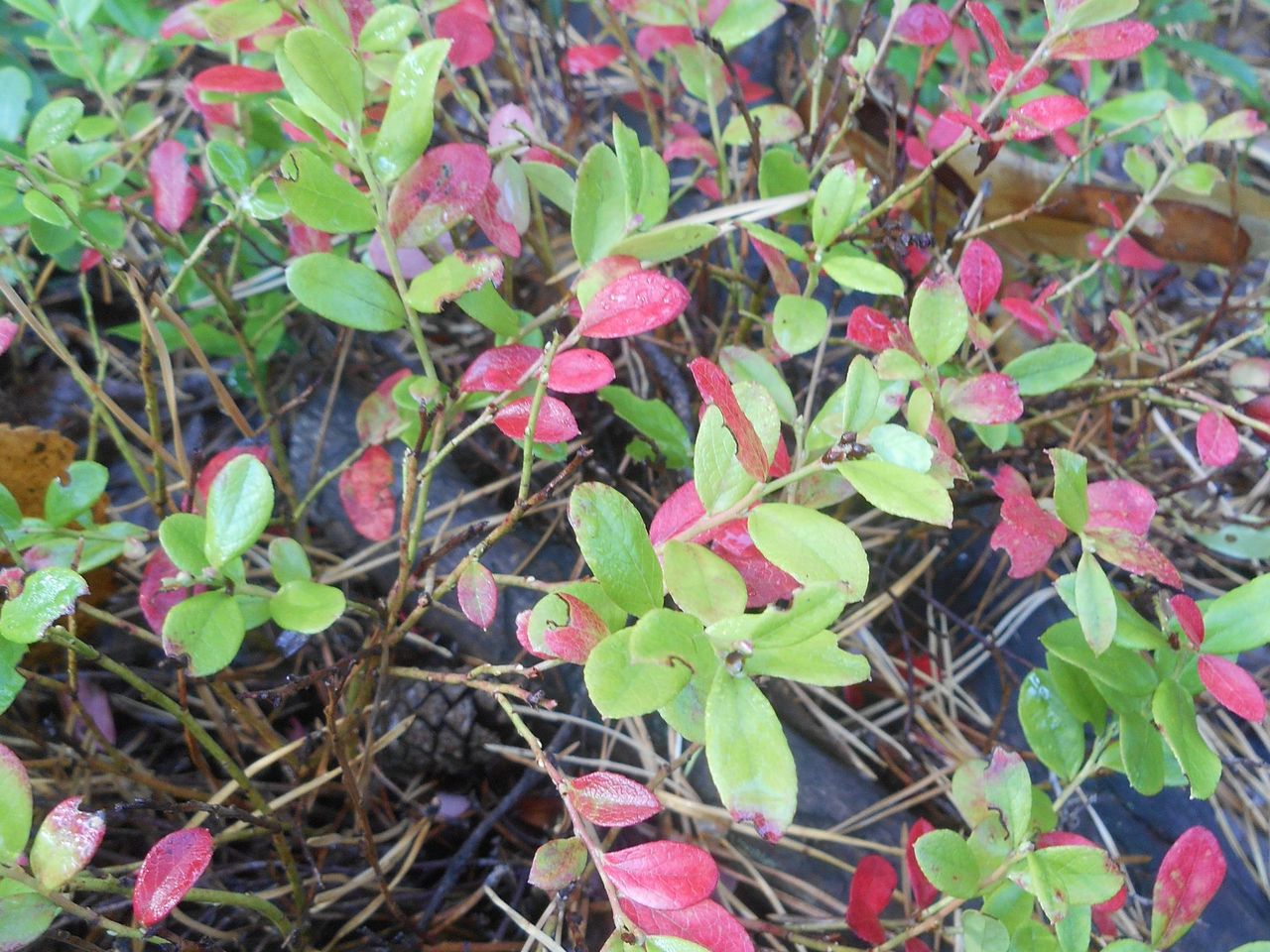 | Андрей Кузьмин | 3ий Гибрид (слева) в сравнении с растущей там брусникой(справа с ягодой). Разница НЕ очевидна, но заметить всё-таки можно. Листья более тонкие, характерное, как для черники, покраснение (розовение) листьев осенью (на втором снимке). |