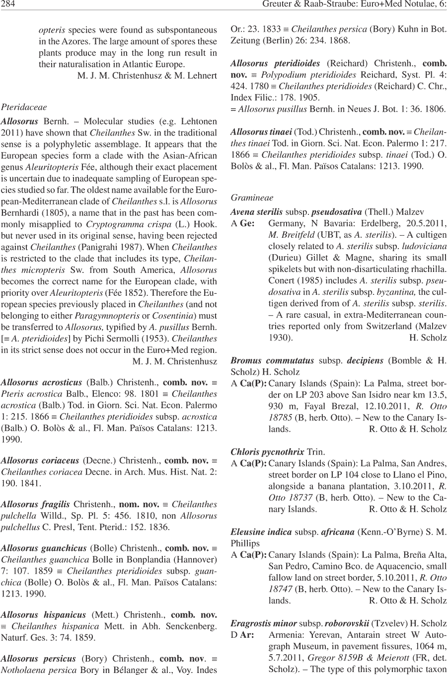 | Андрей Ковальчук | Обнародование комбинации Cheilanthes pteridioides (Reichard) C. Christ. (Index Filicum 178. 1905):