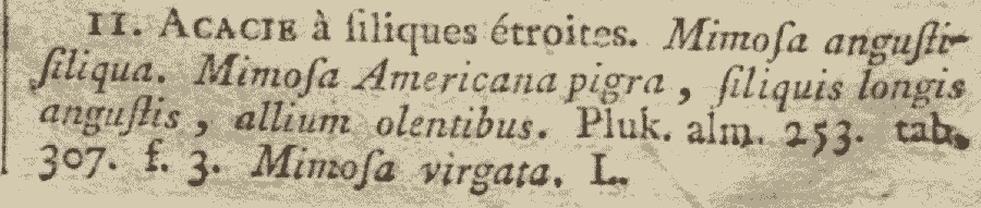 Обнародование комбинации Mimosa angustisiliqua Lam., nom. illeg. (Encyclopédie Méthodique, Botanique 1(1): 10. 1783):