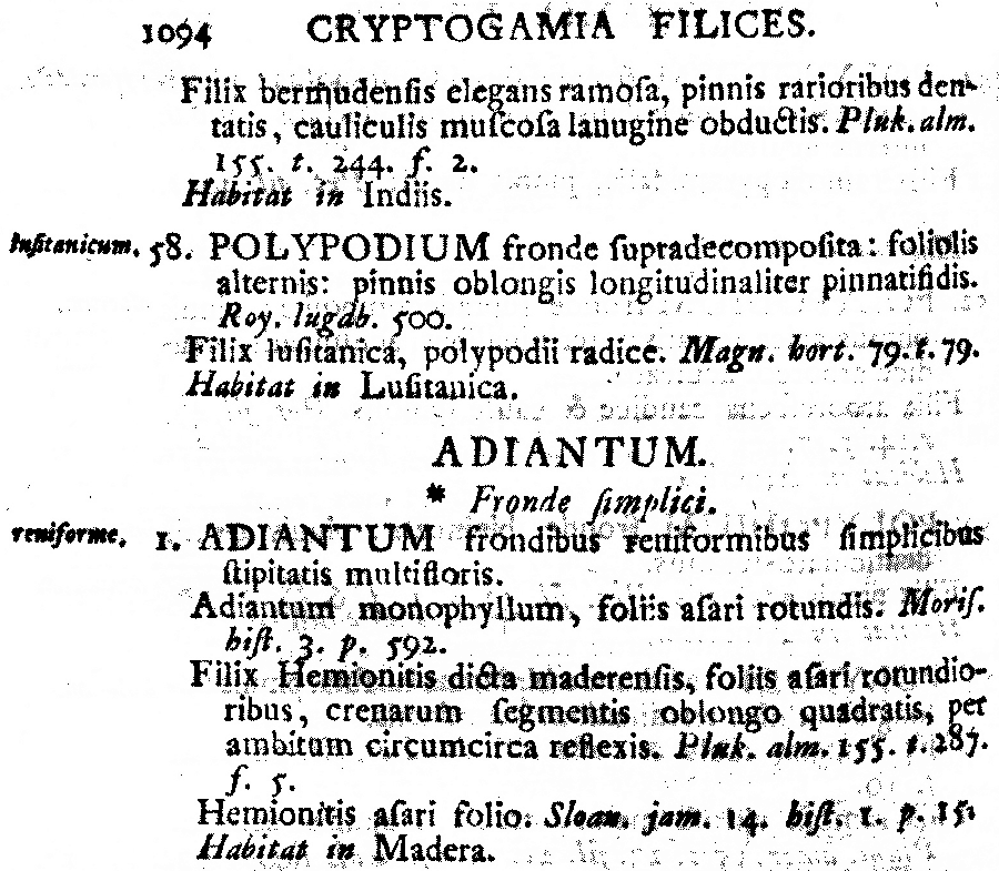 Протолог Adiantum reniforme L. (Species Plantarum 2: 1094. 1753 [1 May 1753]):