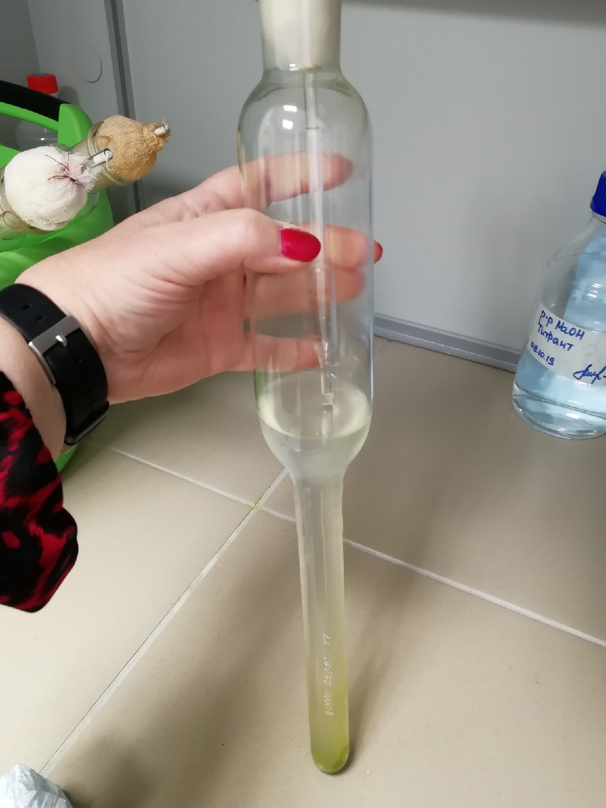 А вот как оно правильно называется — не знаем. Оно такое со шлифом в горле. А пипетка вставлена, она не оттуда.