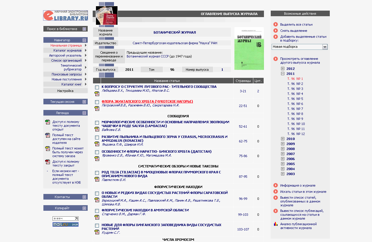 | Павел Евсеенков | А нет ли уже у кого №10, 2013 ? Там нужна статья " AVENA CLAUDA (POACEAE) — НОВЫЙ ВИД ДЛЯ ФЛОРЫ ВОСТОЧНОЙ ЕВРОПЫ". |