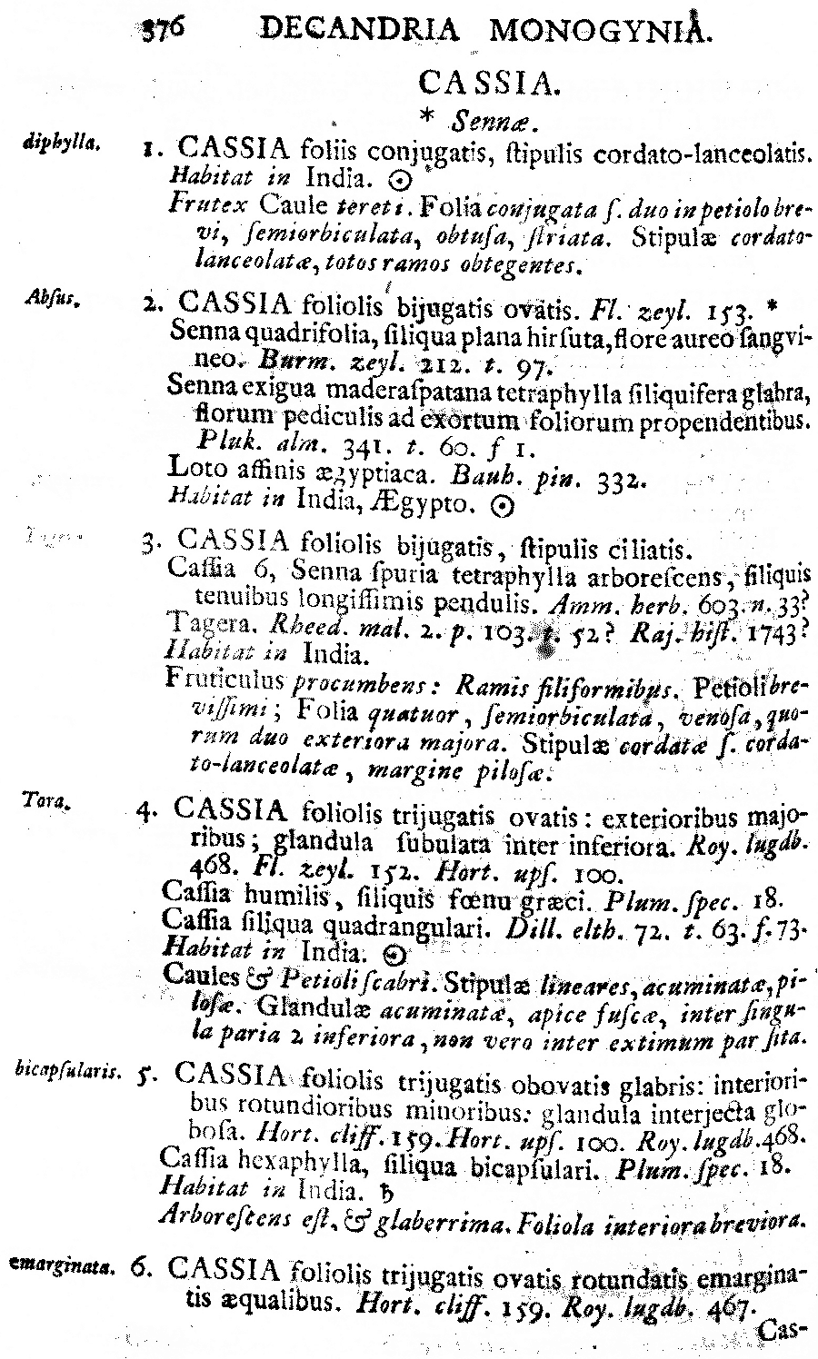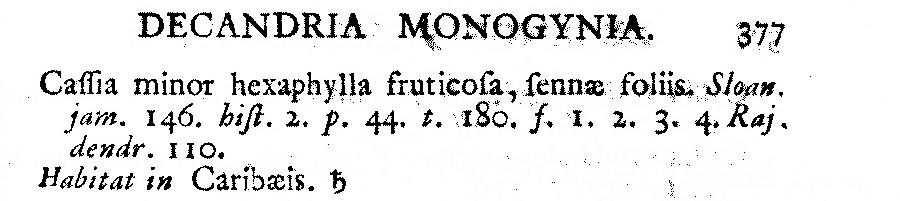 Протолог Cassia bicapsularis L. и Cassia emarginata L. (Species Plantarum 1: 376. 1753 [1 May 1753]):