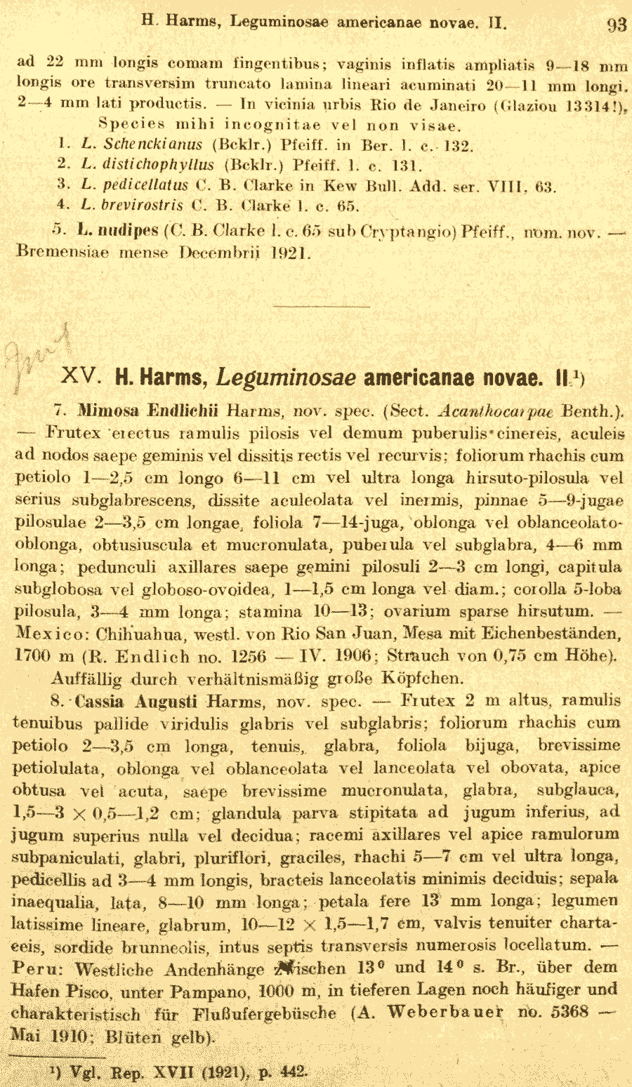 Протолог Cassia augusti Harms (Repertorium Specierum Novarum Regni Vegetabilis 18: 93. 1922):