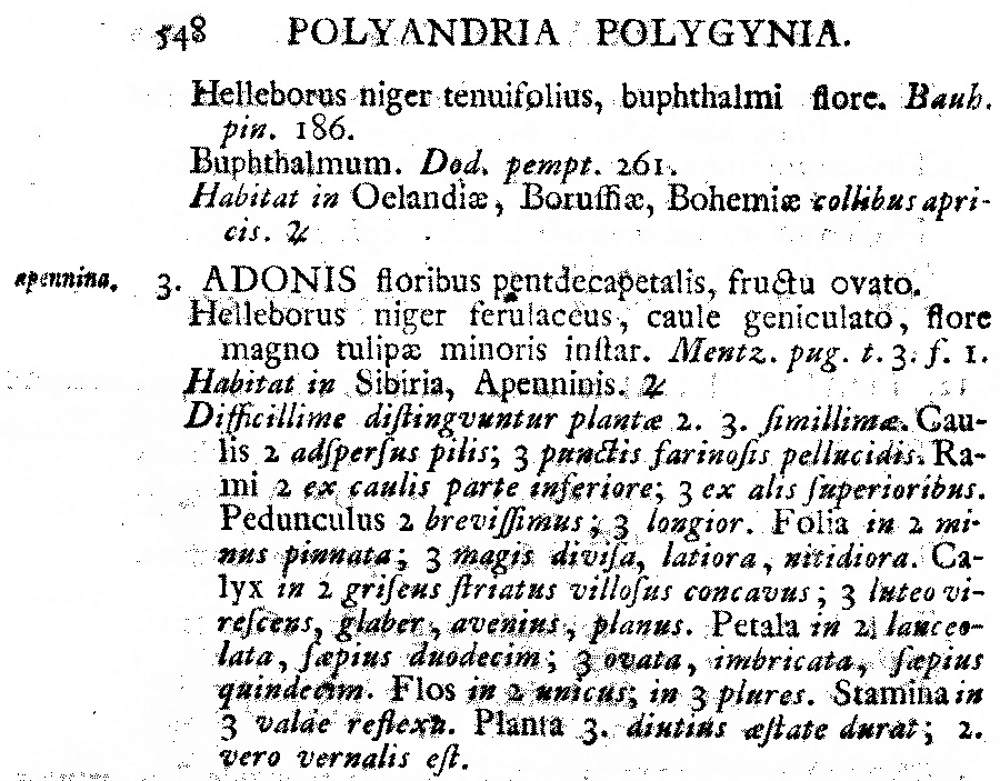 Протолог Adonis apennina L. (Species Plantarum 1: 547. 1753 [1 May 1753]):