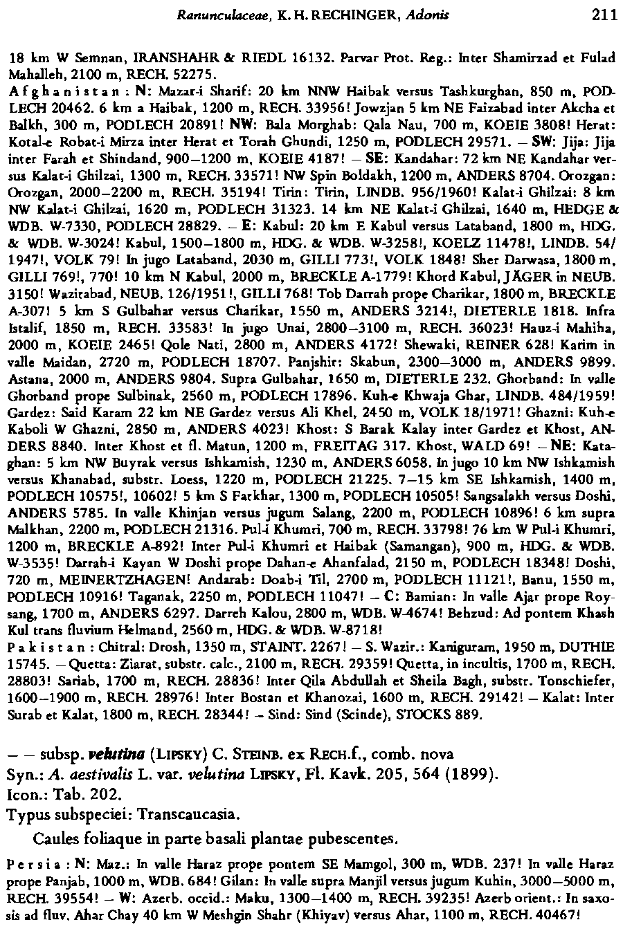 | Андрей Ковальчук | Обнародование комбинации Adonis scrobiculata subsp. velutina (Lipsky) C. H. Steinb. ex Rech. f. (Flora Iranica [Rechinger] 171: 211. 1992):