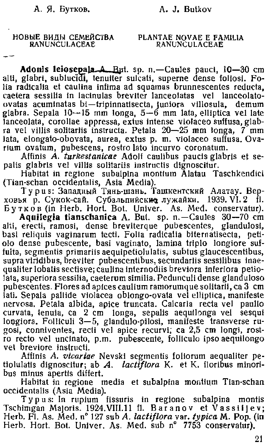 | Андрей Ковальчук | Протолог Adonis leiosepala Butkov (Ботанические материалы Гербария Ботанического института Узбекистанского филиала Академии наук СССР 3: 21. 1941):