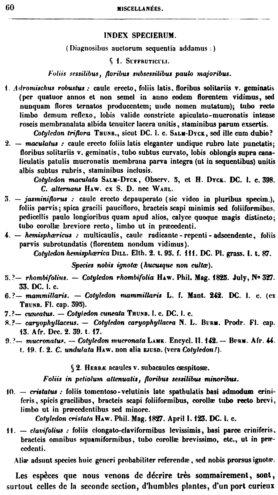 Протолог рода Adromischus Lem. (Jardin Fleuriste 2: Misc., 59. 1852; lectotype: