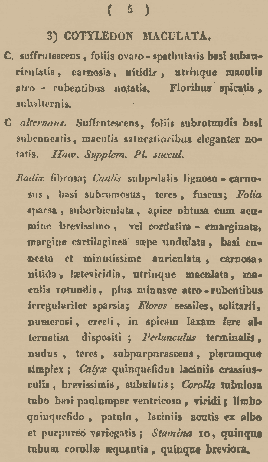 | Андрей Ковальчук | Протолог Cotyledon maculata Salm-Dyck (Observationes Botanicae in Horto Dyckensi notatae [1]: 5. 1820):