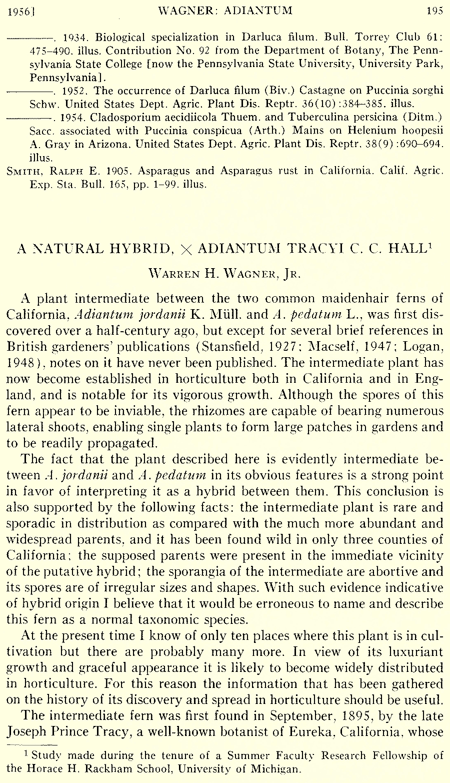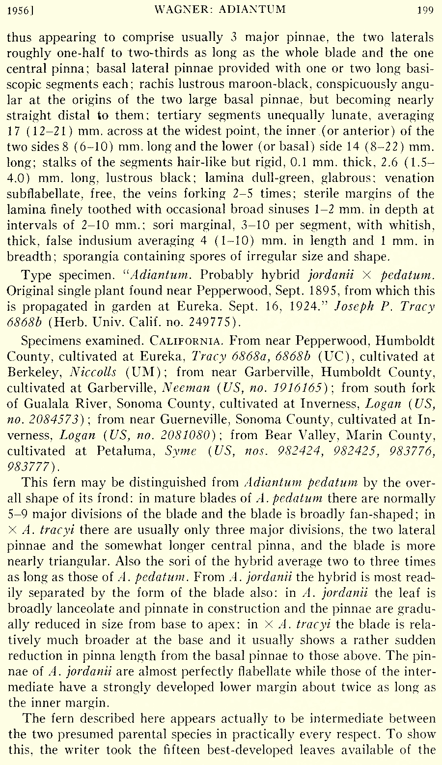 Протолог Adiantum × tracyi C.C. Hall ex W.H. Wagner (Madroño 13(6): 198, f. 1, 2B, 3B. 1956):