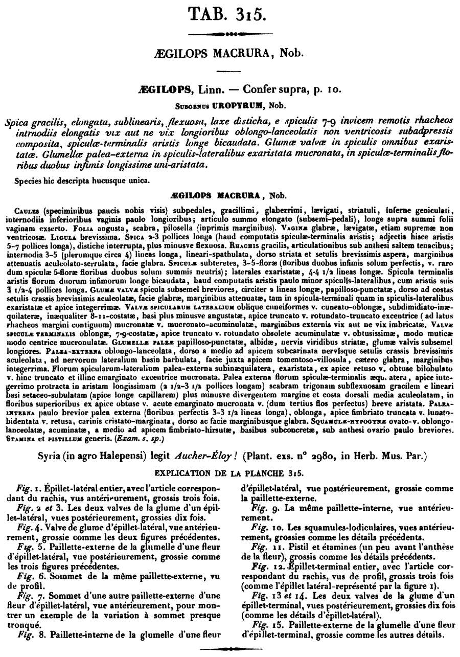 Протолог Aegilops aucheri Boiss. (Diagnoses Plantarum Orientalium Novarum, ser. 1, 5: 74. 1844):