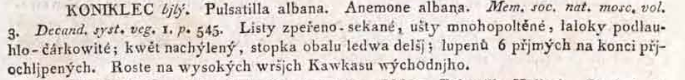 Pulsatilla albana Bercht. & J.Presl, Prir. Rostlin Aneb. Rostl. 1: Ranuncul. 22; Spreng. Syst. ii. 663.