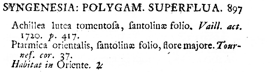 Протолог Achillea santolina L. (Species Plantarum 2: 896. 1753 [1 May 1753]):
