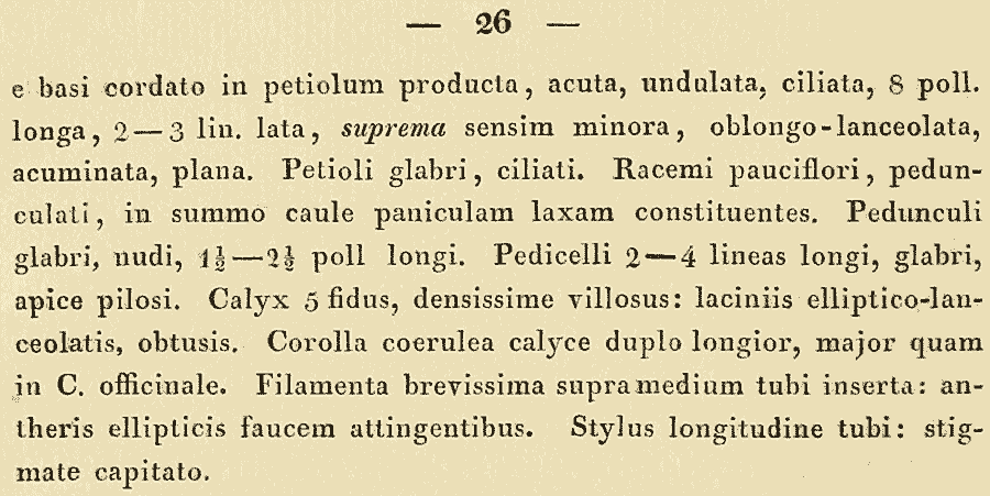 Протолог Cynoglossum grande Dougl. ex Lehm. (Novarum et Minus Cognitarum Stirpium Pugillus 2: 25. 1830):
