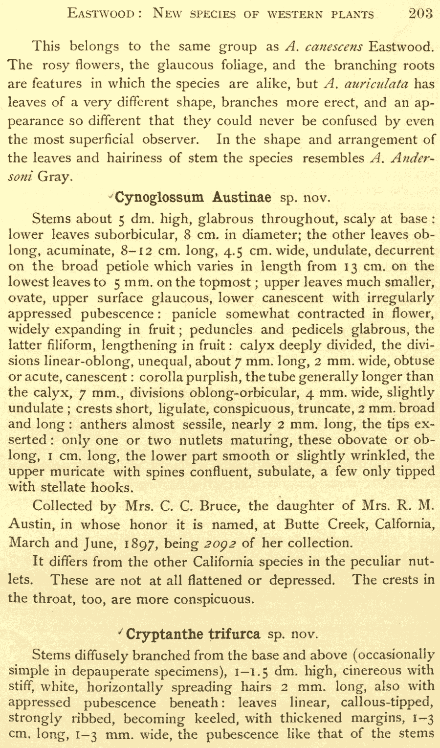 Протолог Cynoglossum austiniae Eastw. (Bulletin of the Torrey Botanical Club 32(4): 203. 1905):