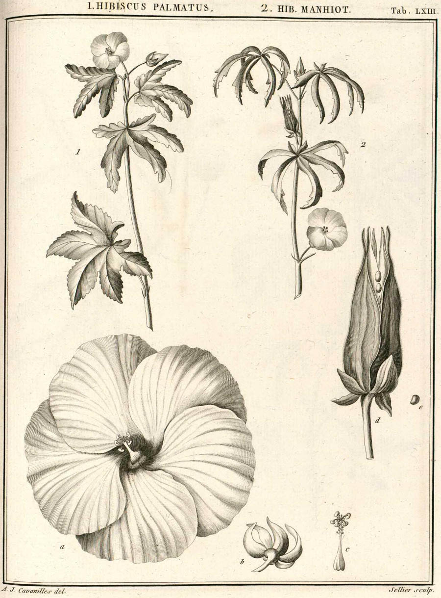 Протолог Hibiscus manihot var. palmatus DC. и Hibiscus pseudomanihot DC. (Prodromus Systematis Naturalis Regni Vegetabilis [A. P. de Candolle] 1: 448. 1824):