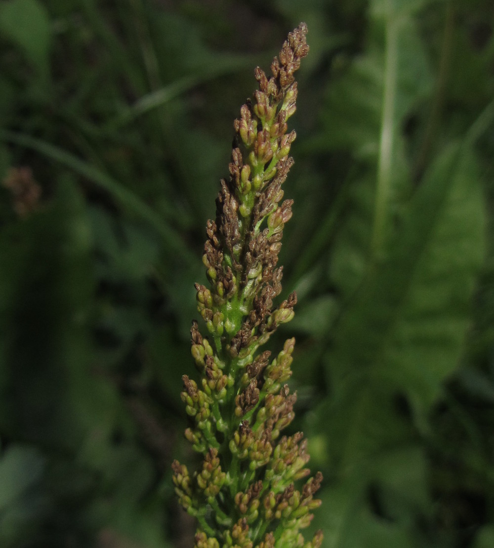 | Дмитрий Орешкин | Урод или мутант Plantago major, видимо. Фото подобных растений на сайте были: