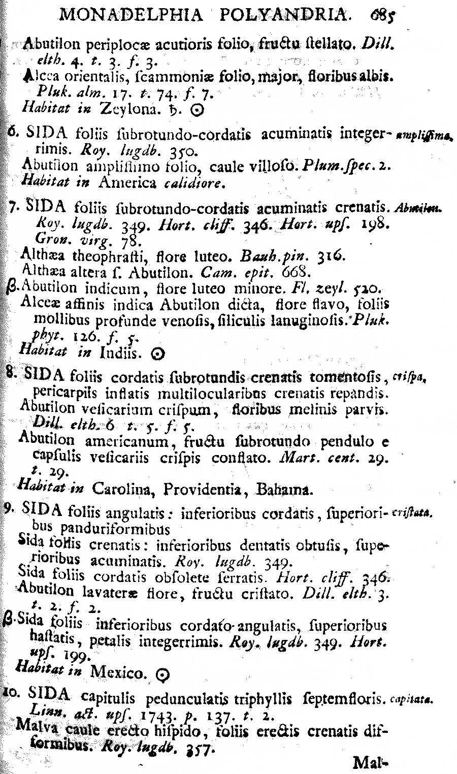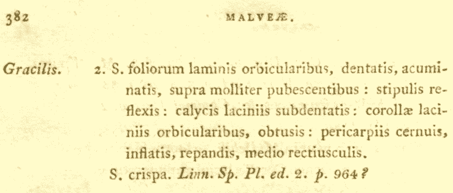 Протолог Sida crispa L. (Species Plantarum 2: 685. 1753 [1 May 1753]):