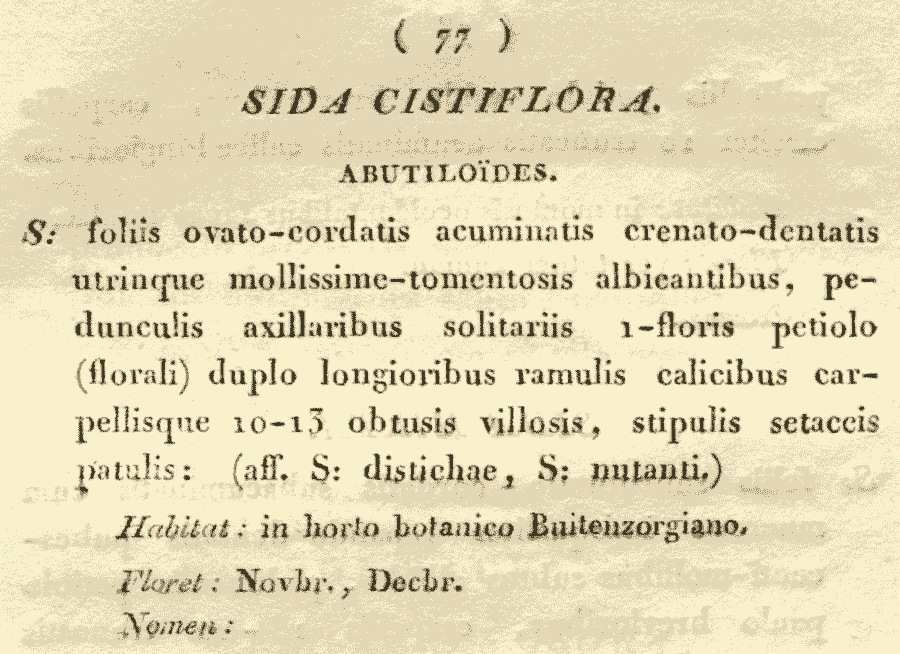 | Андрей Ковальчук | Протолог Sida cistiflora Blume (Bijdragen tot de Flora van Nederlandsch Indie 2:77. 1825)