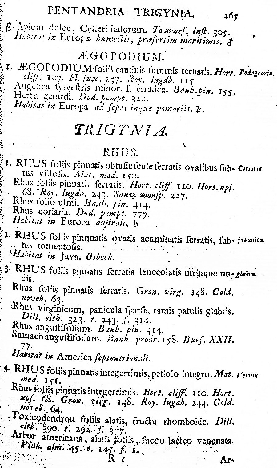 , Species Plantarum 1: 265. 1753 [1 May 1753]. Type: