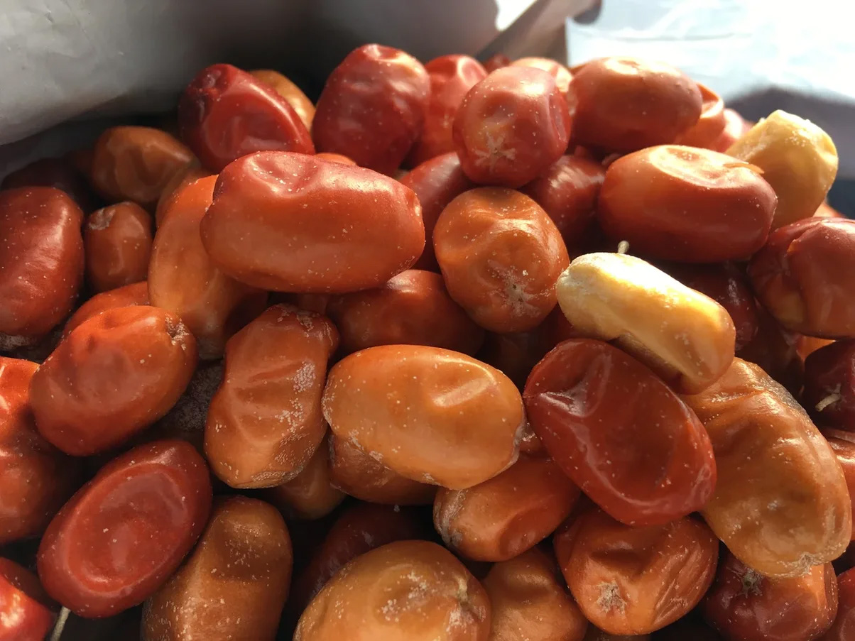 | Лена Глазунова | На базарчиках продавалось такое вот. Сладкое, совершенно без кислинки. Какие-то немного ватные. Или даже не немного. Я сначала решила,что унаби, но косточка не такая острая. И ещё с продольными полосками. Да и унаби как-то посочнее, как мне помнится.