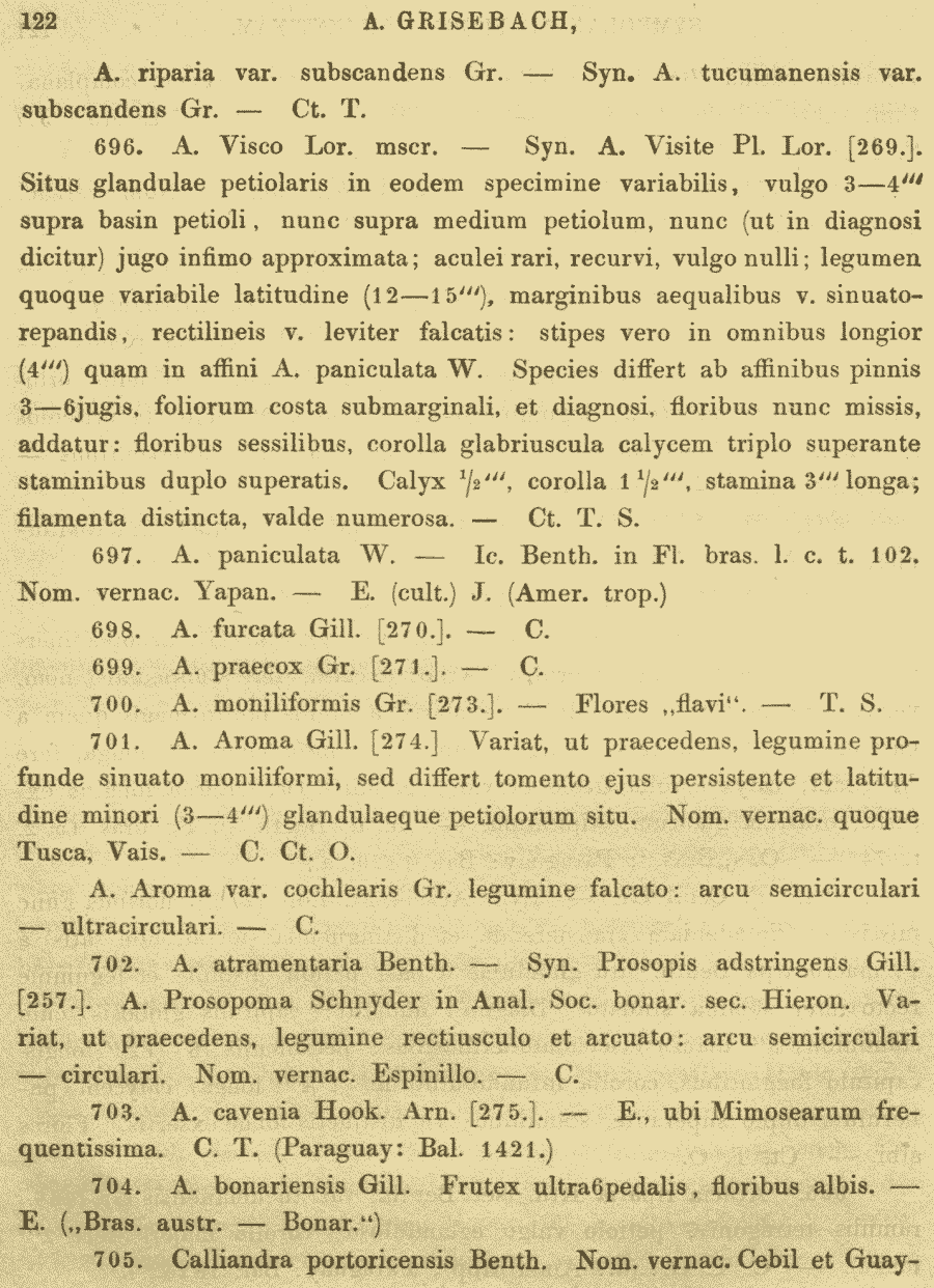 Протолог Acacia aroma var. cochlearis Griseb. (Abhandlungen der Königlichen Gesellschaft der Wissenschaften zu Göttingen 24: 122. 1879):