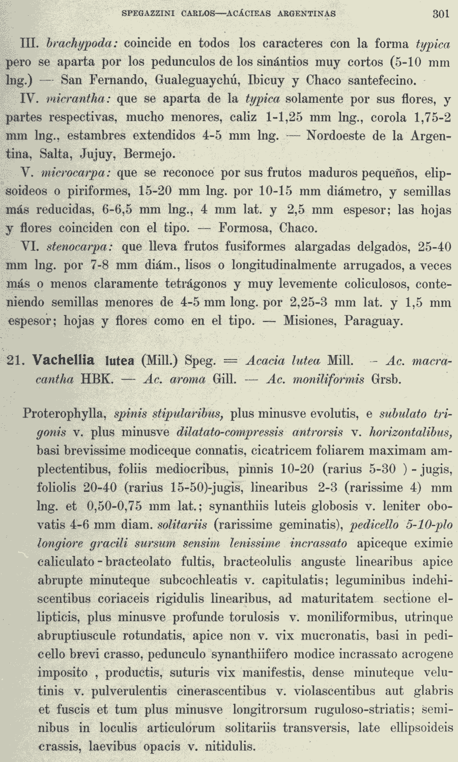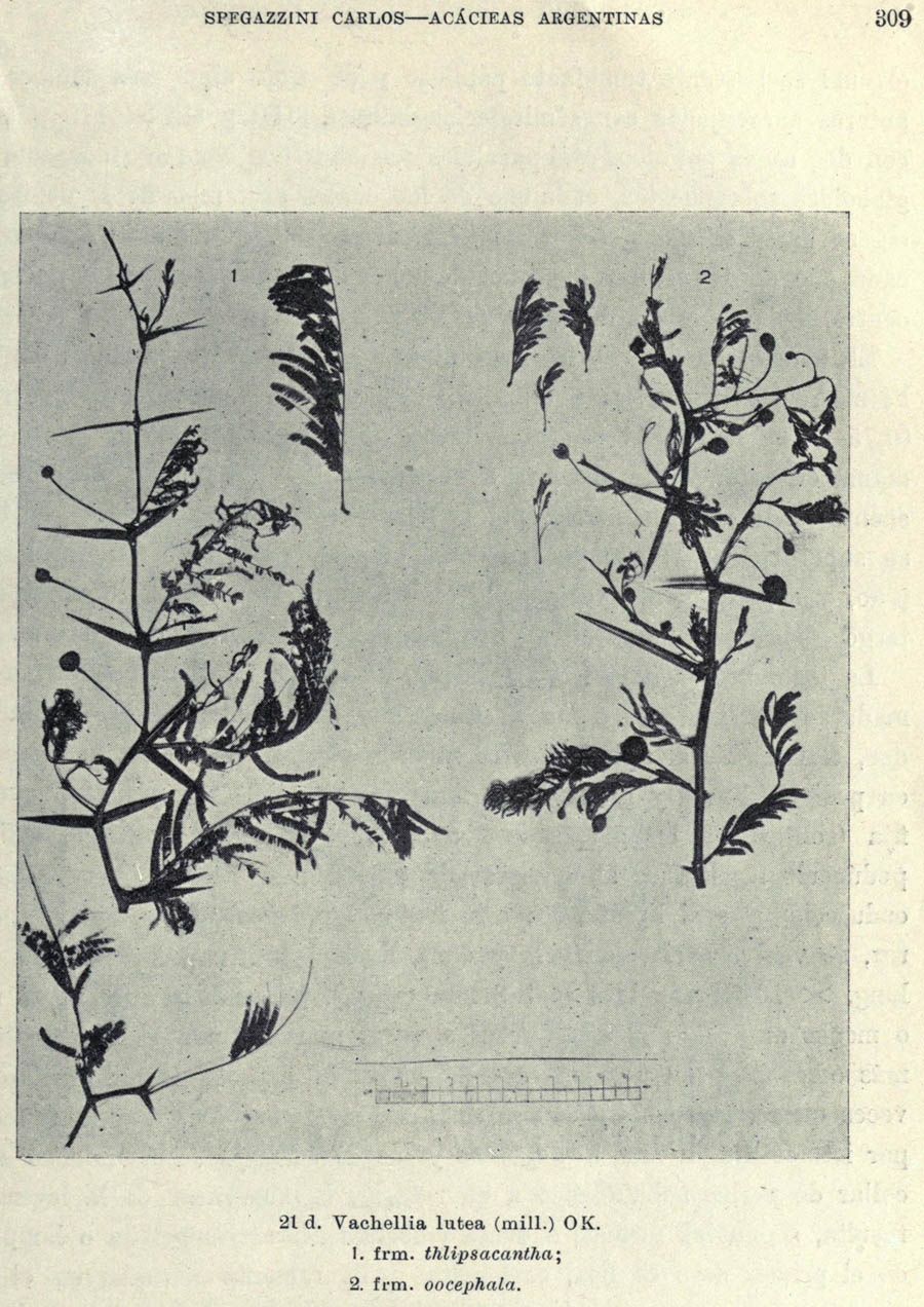 | Андрей Ковальчук | Протолог Vachellia lutea f. oocephala Speg. (Boletín de la Academia Nacional de Ciencias, Córdoba, Argentina 26: 312. 1924), Vachellia lutea f. thlipsacantha Speg. (Boletín de la Academia Nacional de Ciencias, Córdoba, Argentina 26: 313. 1924), Vachellia lutea var. aroma f. leptocarpa Speg. и Vachellia lutea var. aroma f. pachycarpa Speg. (Boletín de la Academia Nacional de Ciencias, Córdoba, Argentina 26: 314. 1924):