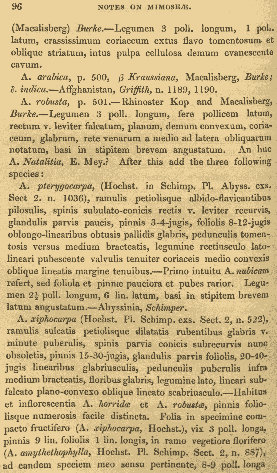 Протолог Acacia pterygocarpa Hochst. ex Benth. (The London journal of botany 5: 96. 1846):