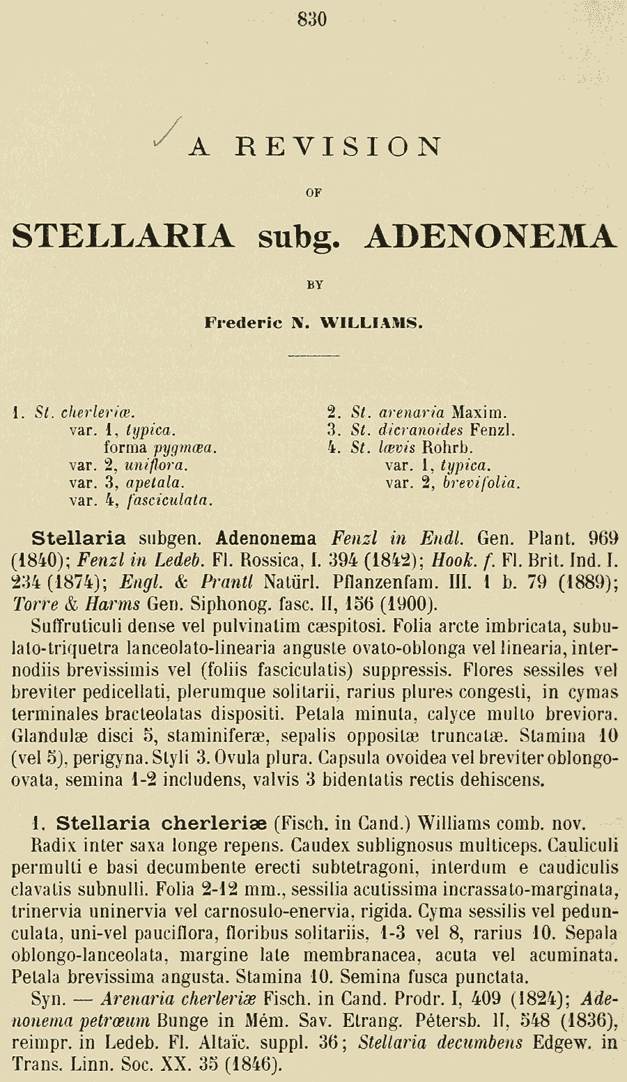 | Андрей Ковальчук | Обнародование комбинации Stellaria cherleriae (Fisch. ex Ser.) F.N. Williams (Bulletin de l'Herbier Boissier ser. 2, 7: 830. 1907):