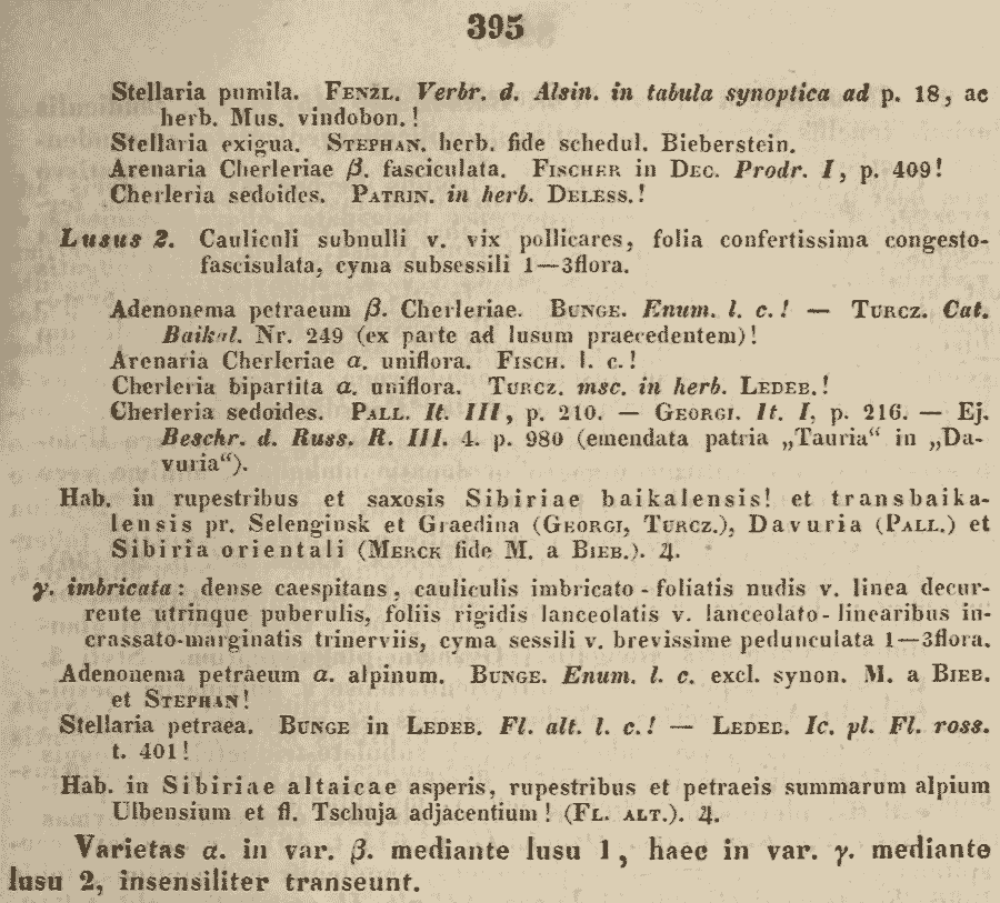 Протолог Arenaria cherleriae Fisch. ex Ser. (Prodromus Systematis Naturalis Regni Vegetabilis [A. P. de Candolle] 1: 409. 1824):