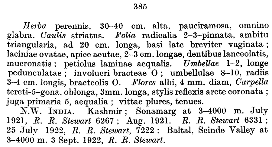 Протолог Pimpinella kaschmirica R. Stewart ex Dunn (Bulletin of Miscellaneous Information [Kew] 1924(10): 384. 1924):