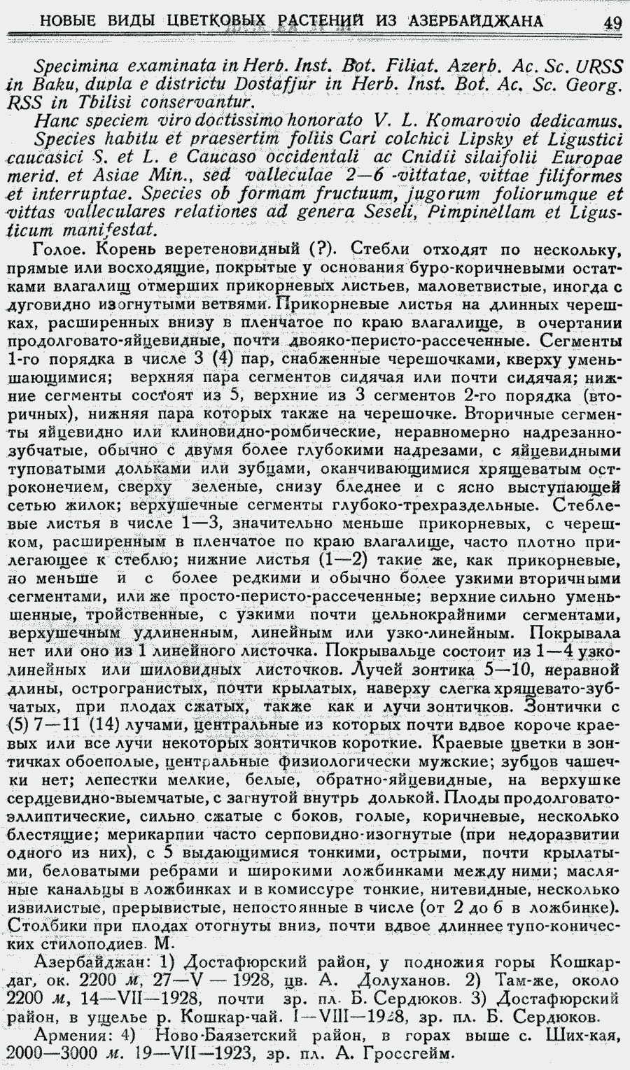 Протолог Carum komarovii Karjagin (Известия Азербайджанского филиала Академии наук СССР 10: 48. 1944):