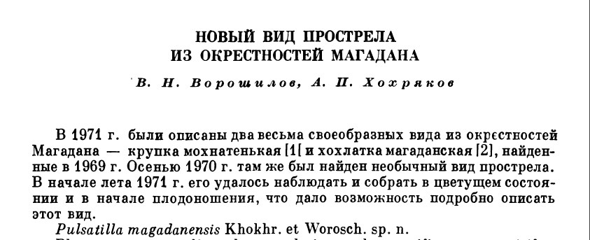 | Юрий Постников | «Pulsatilla magadanensis A.P.Khokhr. & Vorosch. is an unresolved name»