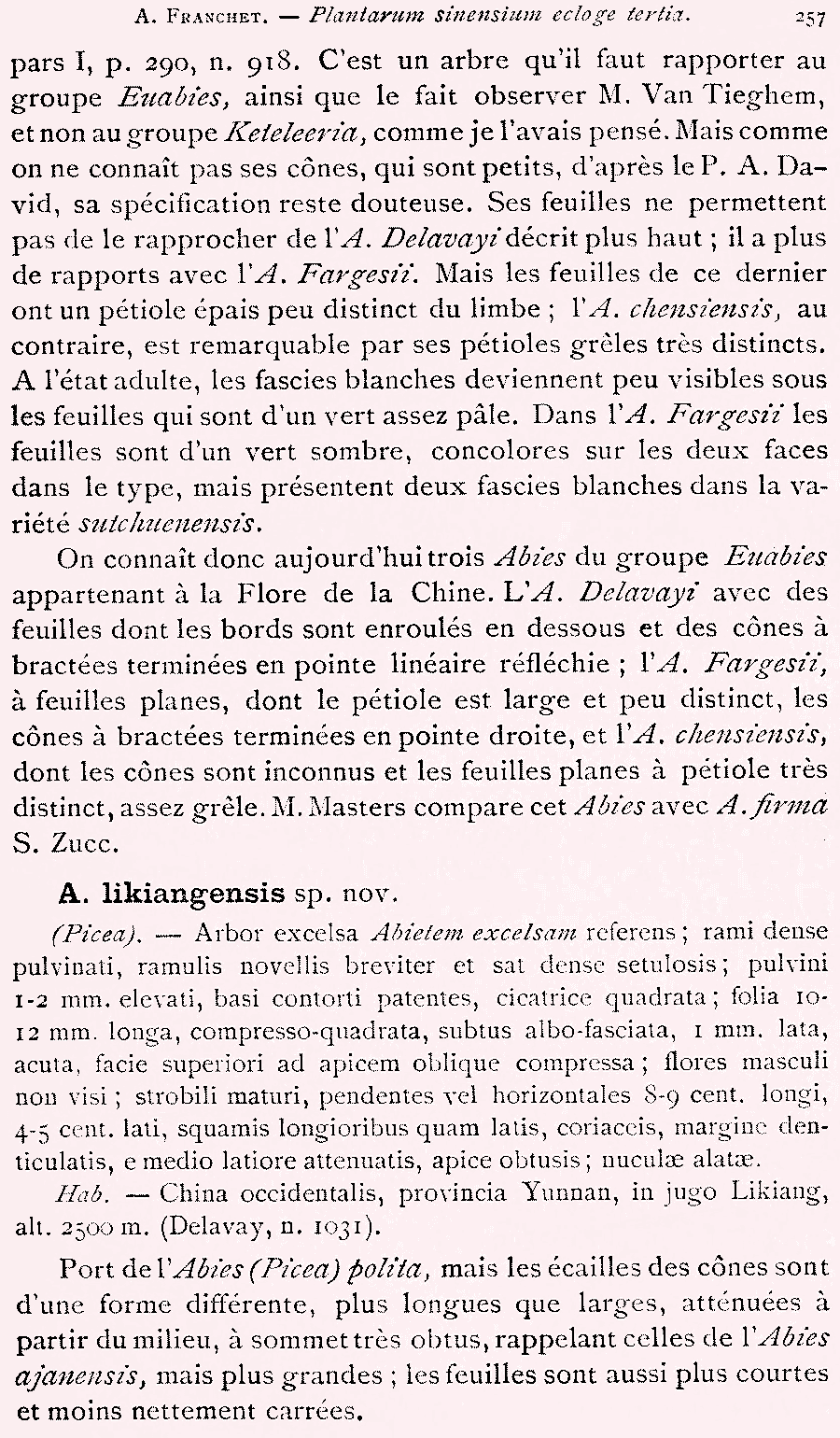 | Андрей Ковальчук | Обнародование комбинации Picea likiangensis (Franch.) E. Pritz. (Botanische Jahrbücher für Systematik, Pflanzengeschichte und Pflanzengeographie 29(2): 217. 1900):