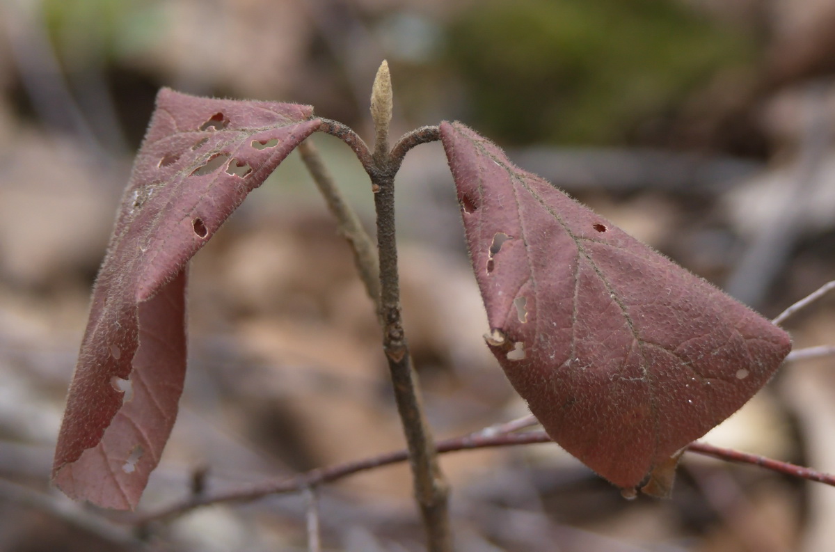 Кустарник с перезимовавшими листьями