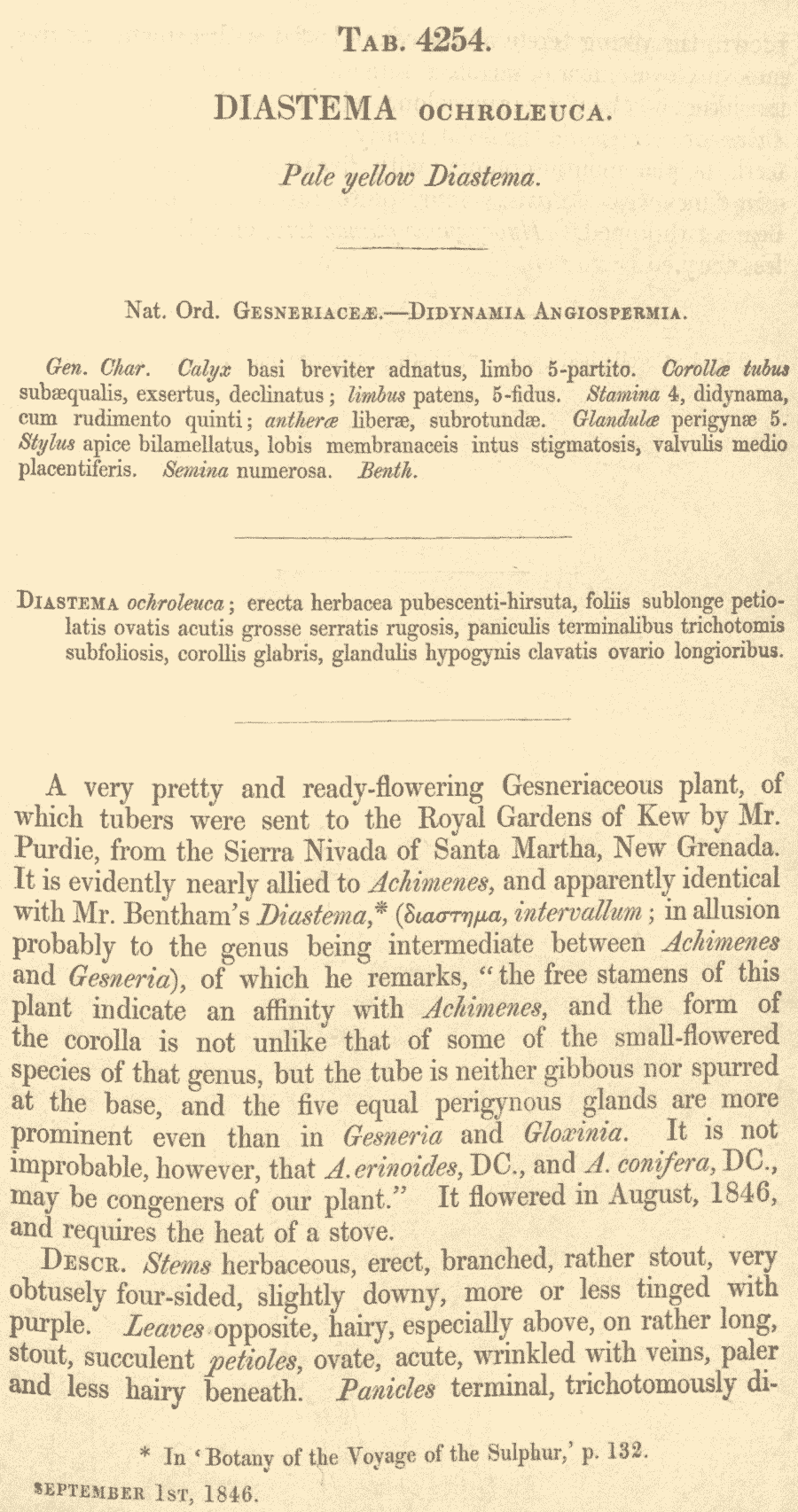 Протолог Diastema ochroleucum Hook. (Botanical Magazine 72: t. 4254. 1845):