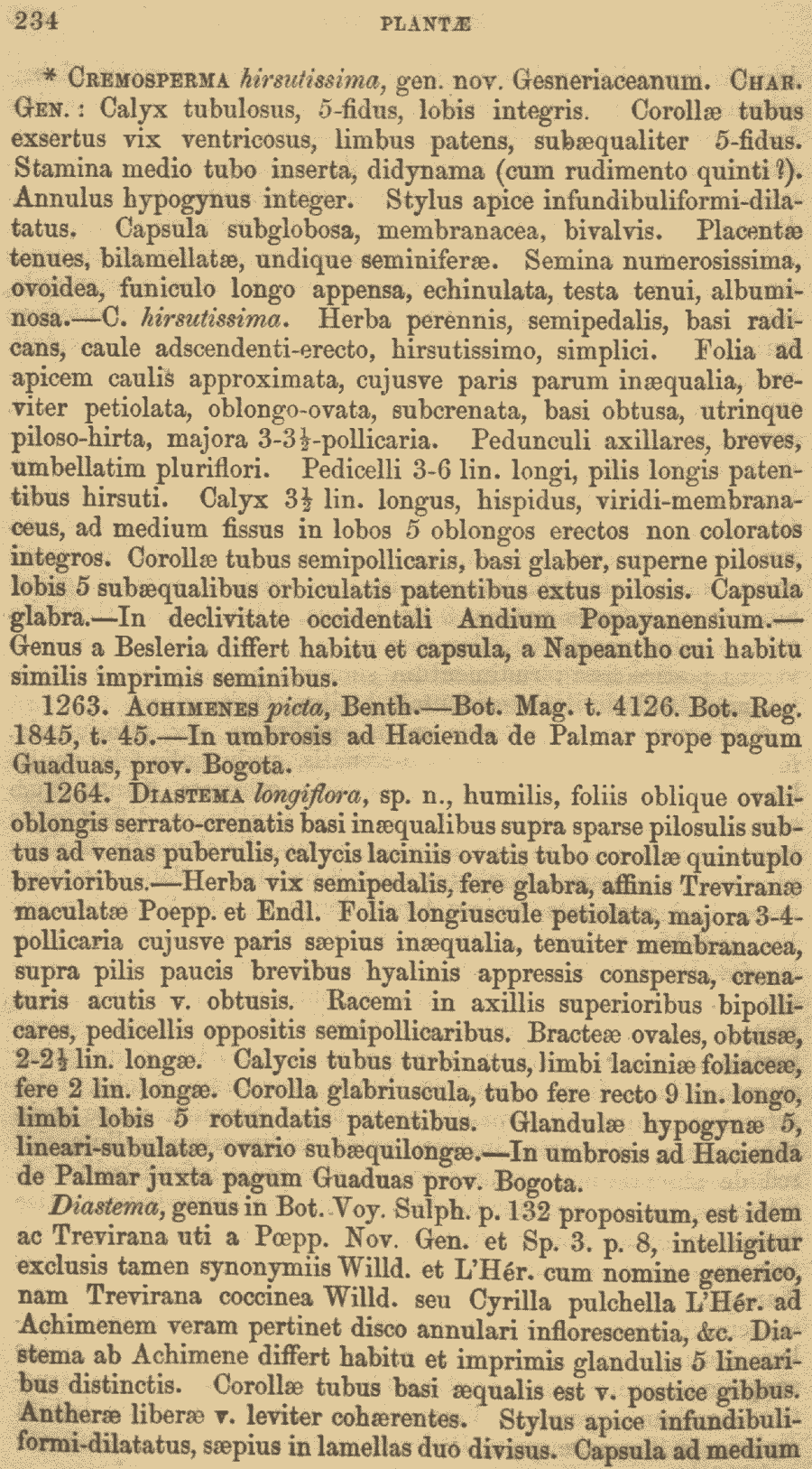 Протолог Diastema caracasanum Klotzsch & Hanst. и обнародование комбинации Achimenes punctata Moritz ex Hanst., nom. inval. (Annales des Sciences Naturelles; Botanique, série 4, 6: 371. 1856):
