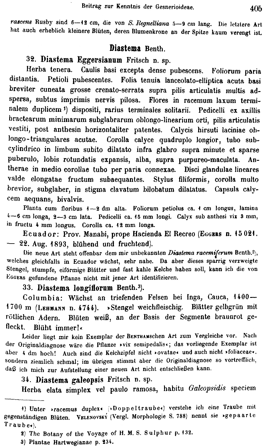 Протолог Diastema eggersianum Fritsch (Botanische Jahrbücher für Systematik, Pflanzengeschichte und Pflanzengeographie 50: 405. 1913 [25 Nov 1913]):