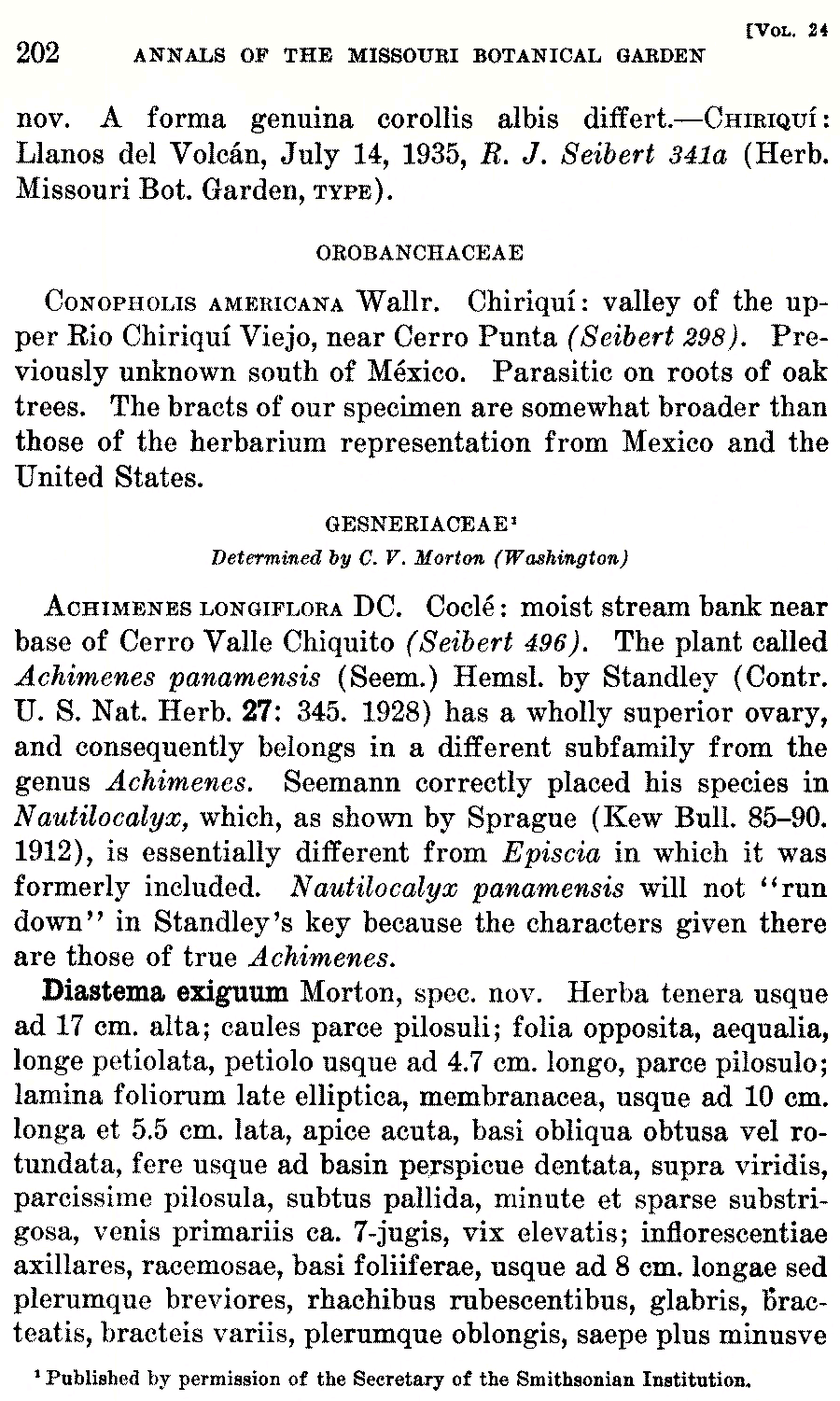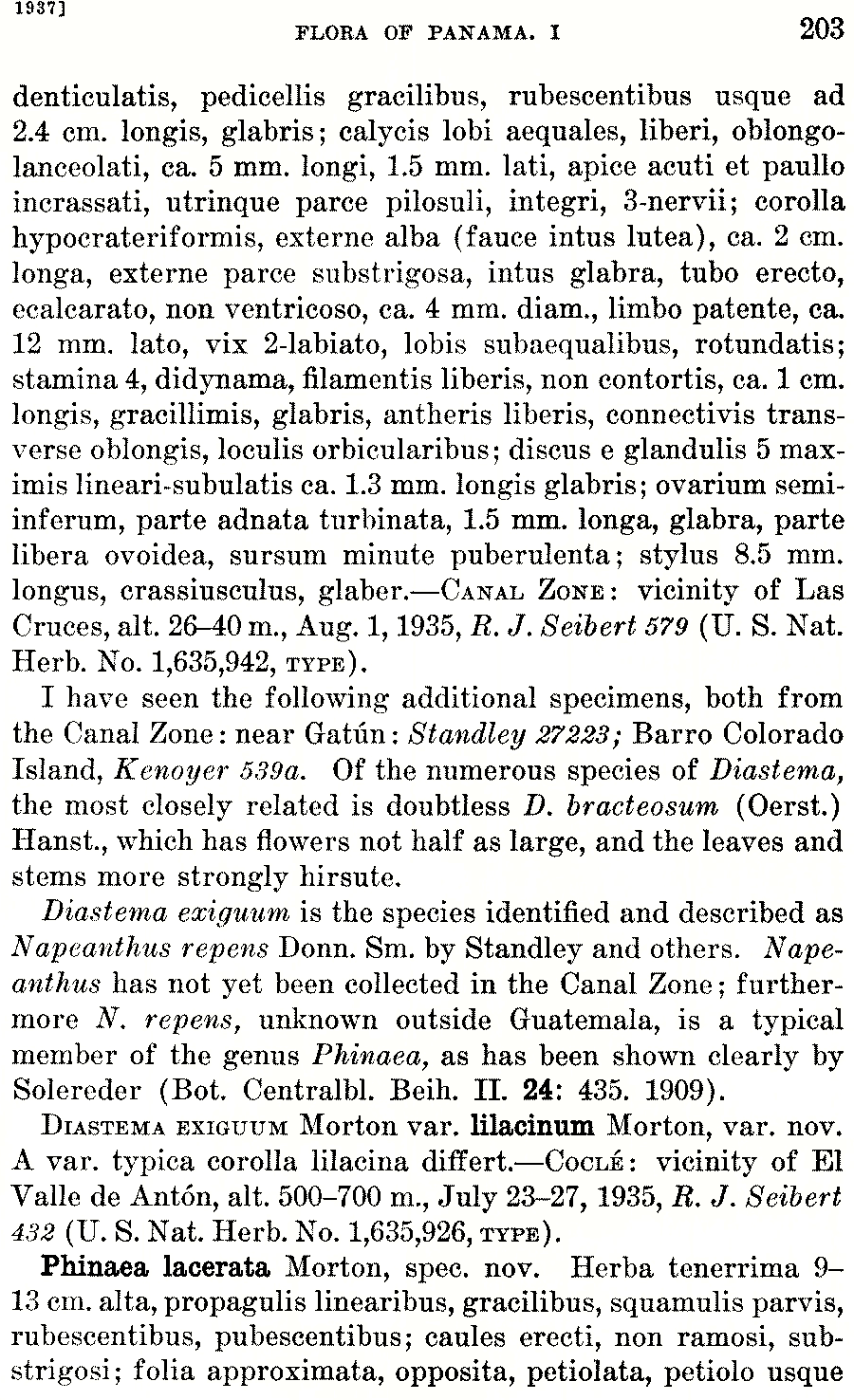 Протолог Diastema exiguum C.V. Morton (Annals of the Missouri Botanical Garden 24(2): 202. 1937) и Diastema exiguum var. lilacinum C.V. Morton (Annals of the Missouri Botanical Garden 24(2): 203. 1937):