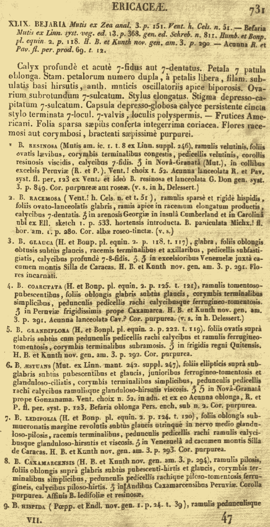 Типовой гербарный образец (лектотип) Bejaria glauca Bonpl.: https://herbarium.bgbm.org/object/BW09124010 Протолог Bejaria glauca Bonpl. (Alexandri de Humboldt et Amati Bonpland Plantae Aequinoctiales 2: 118, t. 117. 1813):