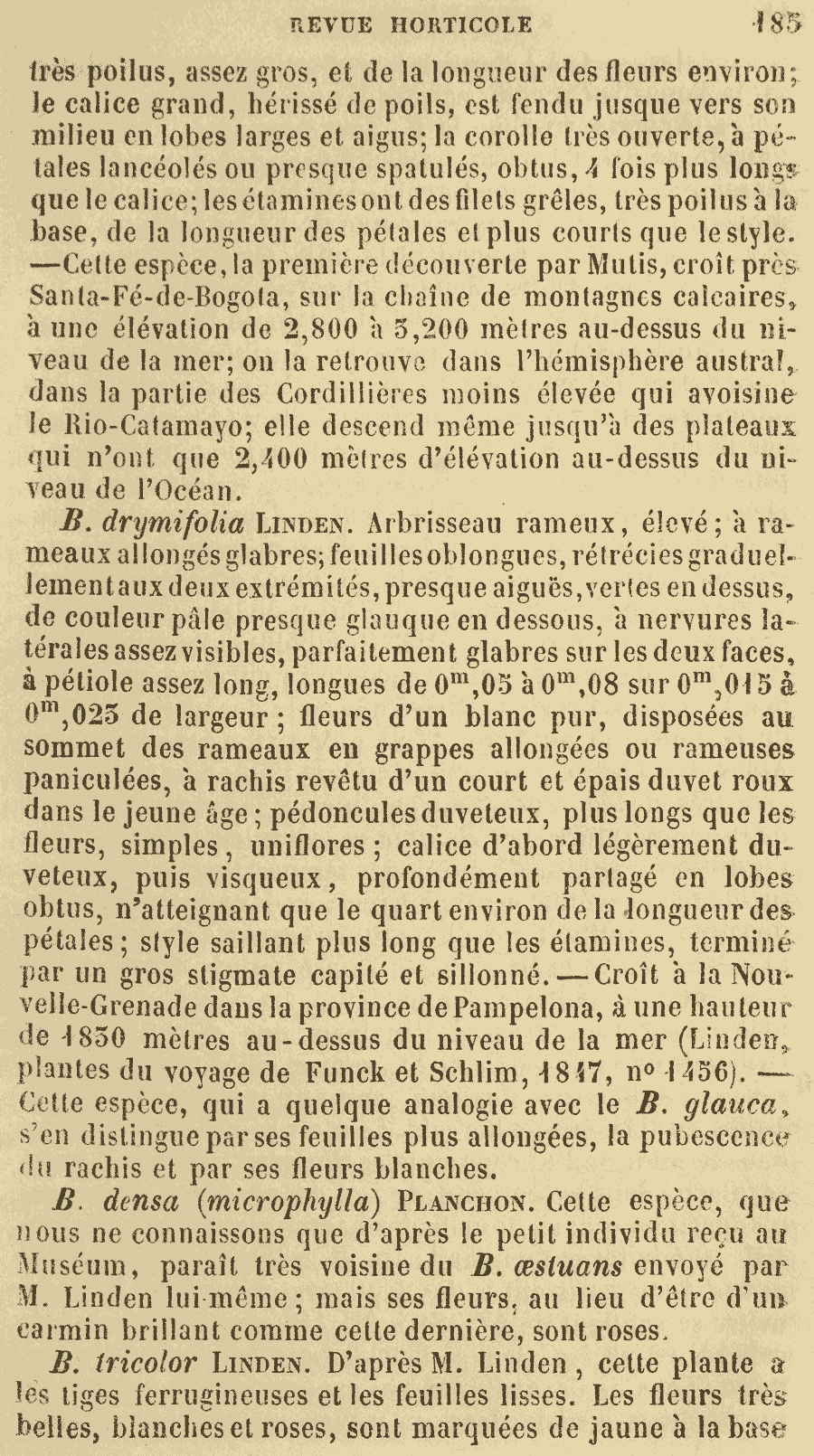 Типовой гербарный образец (лектотип) Bejaria lindeniana Hérincq: http://www.ville-ge.ch/musinfo/bd/cjb/chg/adetail.php?id=243339&base=img&lang=en Типовой гербарный образец (лектотип) Bejaria drymifolia Linden ex Hérincq: https://science.mnhn.fr/institution/mnhn/collection/p/item/p02441898 Протолог Bejaria lindeniana Hérincq (Revue Horticole (Paris), sér. 3, 4: 183. 1850), Bejaria densa Planch. ex Herincq и Bejaria drymifolia Linden ex Hérincq (Revue Horticole (Paris), sér. 3, 4: 185. 1850)