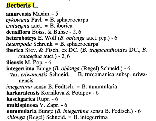 | Дмитрий Орешкин | Berberis oblonga в синонимах B. integerrima согласно сводке Черепанова: