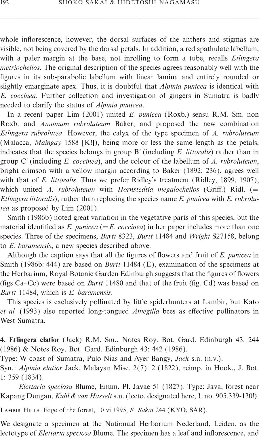 | Андрей Ковальчук | Обнародование комбинации Etlingera coccinea (Blume) S. Sakai & Nagam. (Edinburgh Journal of Botany 60(2): 190. 2003):