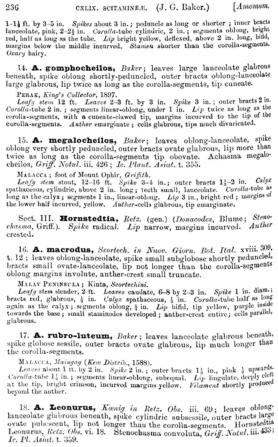 Протолог Amomum gomphocheilos Baker (Flora of British India [J. D. Hooker] 6(18): 236. 1892):