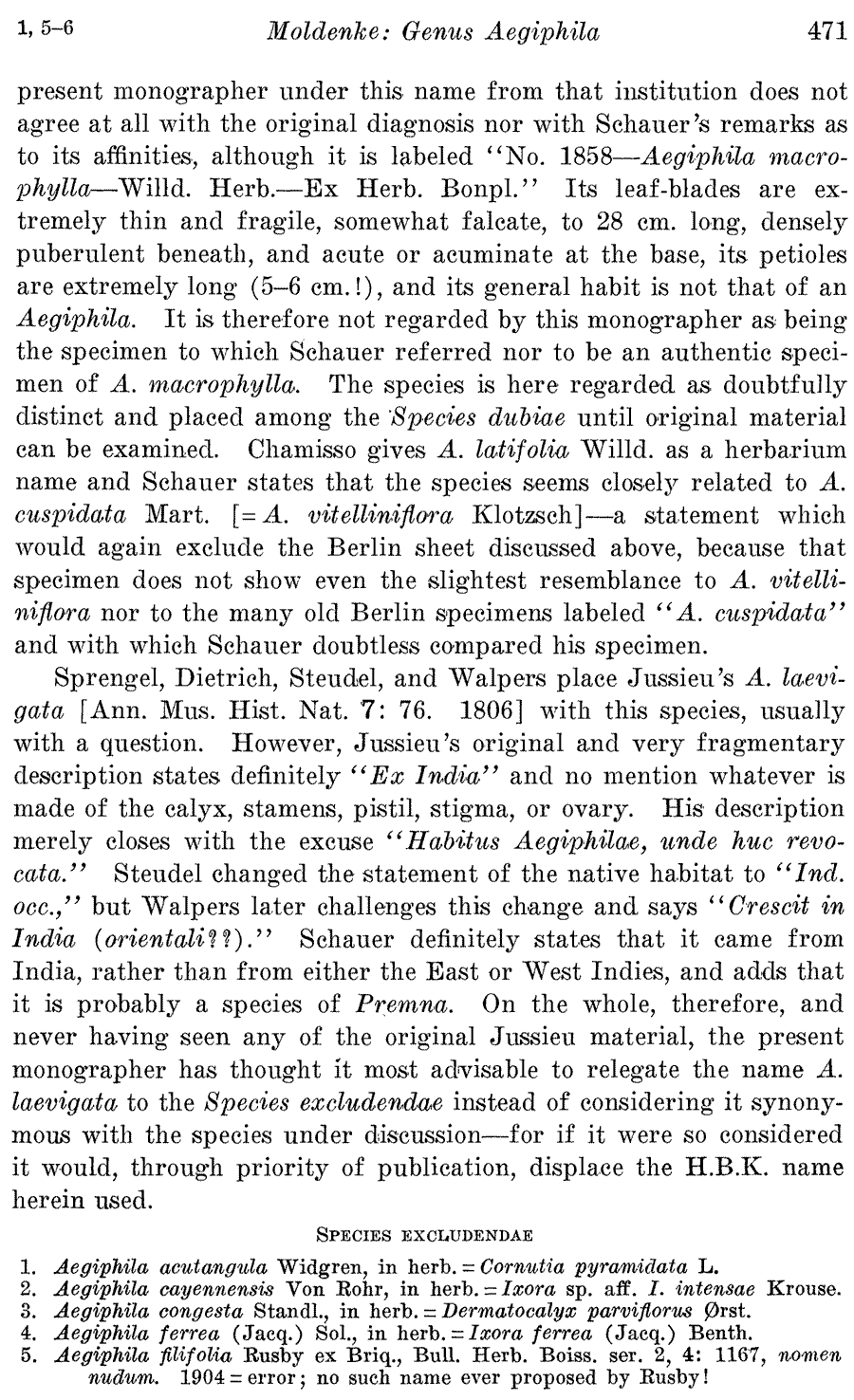 | Андрей Ковальчук | Обнародование комбинации Aegiphila acutangula Widgren ex Moldenke, nom. inval. (Brittonia 1: 471. 1934):