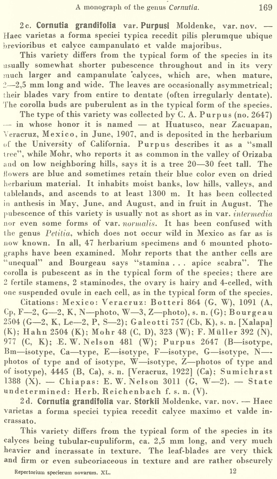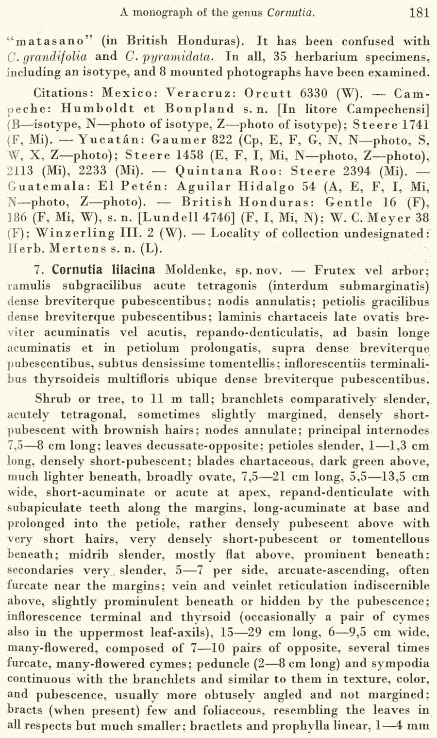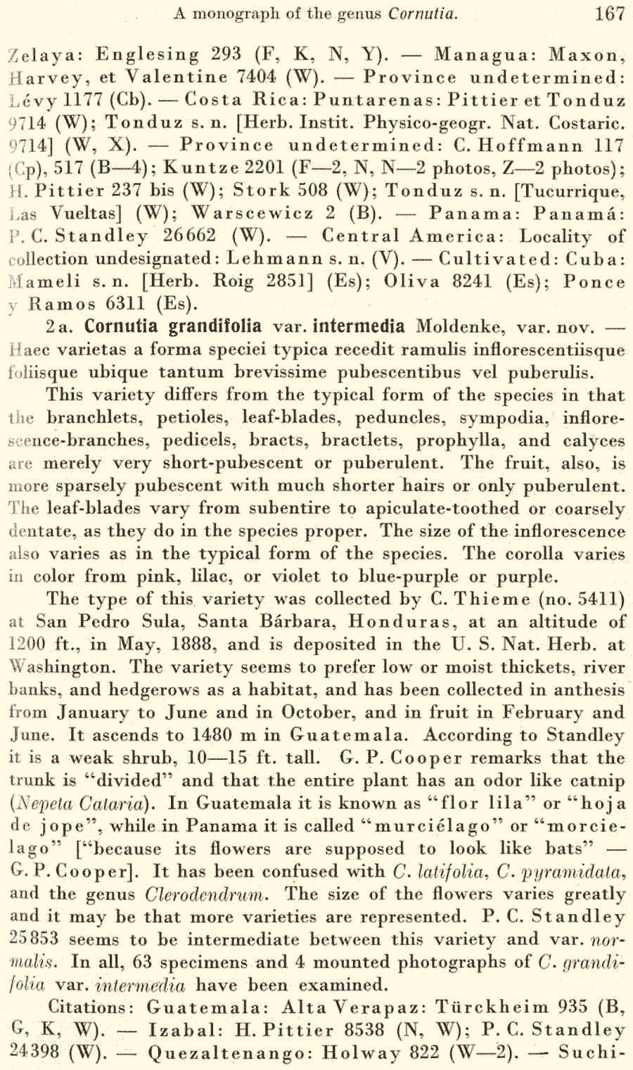 | Андрей Ковальчук | Протолог Cornutia grandifolia var. intermedia Moldenke (Repertorium Specierum Novarum Regni Vegetabilis 40(11–19): 167. 1936 [30 Jun 1936]) и Cornutia grandifolia var. quadrangularis Oerst. ex Moldenke (Repertorium Specierum Novarum Regni Vegetabilis 40(11–19): 168. 1936 [30 Jun 1936]):