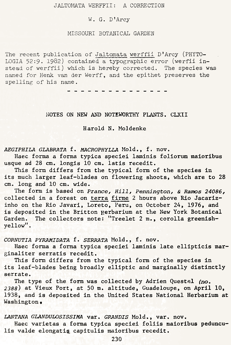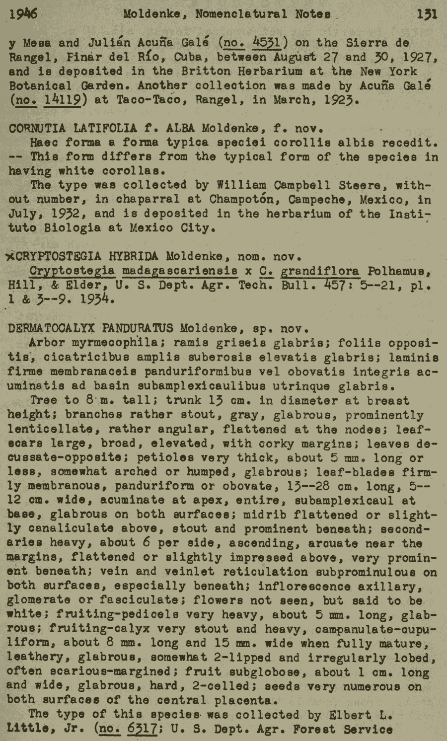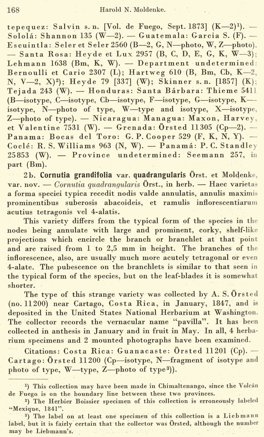 | Андрей Ковальчук | Протолог Cornutia grandifolia var. intermedia Moldenke (Repertorium Specierum Novarum Regni Vegetabilis 40(11–19): 167. 1936 [30 Jun 1936]) и Cornutia grandifolia var. quadrangularis Oerst. ex Moldenke (Repertorium Specierum Novarum Regni Vegetabilis 40(11–19): 168. 1936 [30 Jun 1936]):