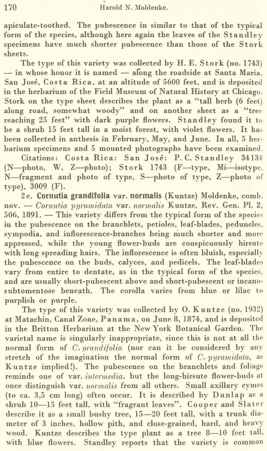 | Андрей Ковальчук | Протолог Cornutia grandifolia var. storkii Moldenke (Repertorium Specierum Novarum Regni Vegetabilis 40(11–19): 169. 1936 [30 Jun 1936]):