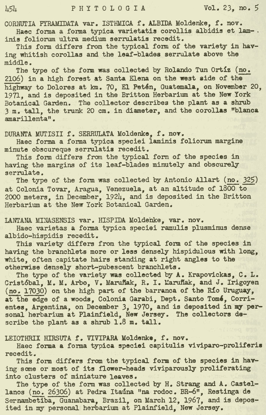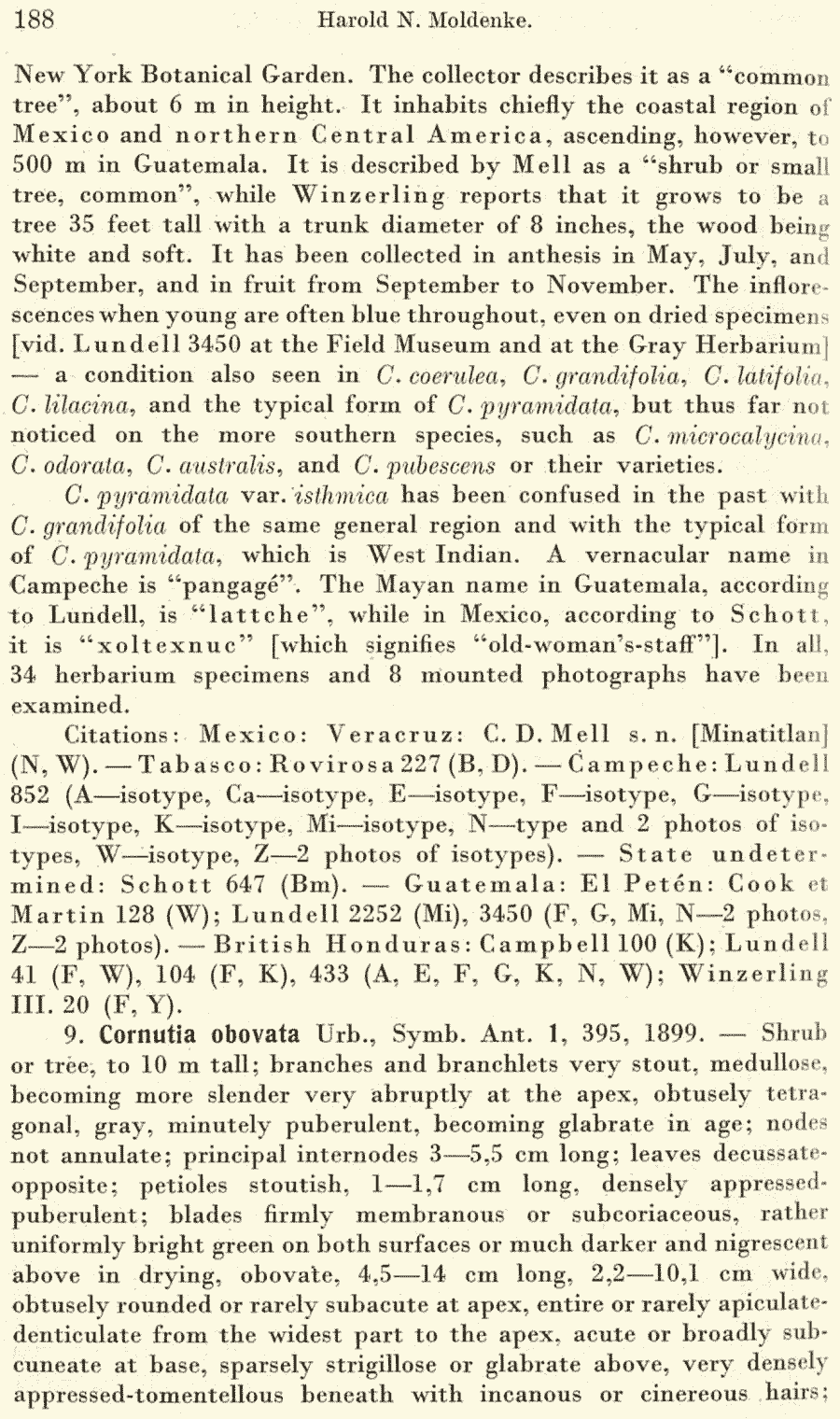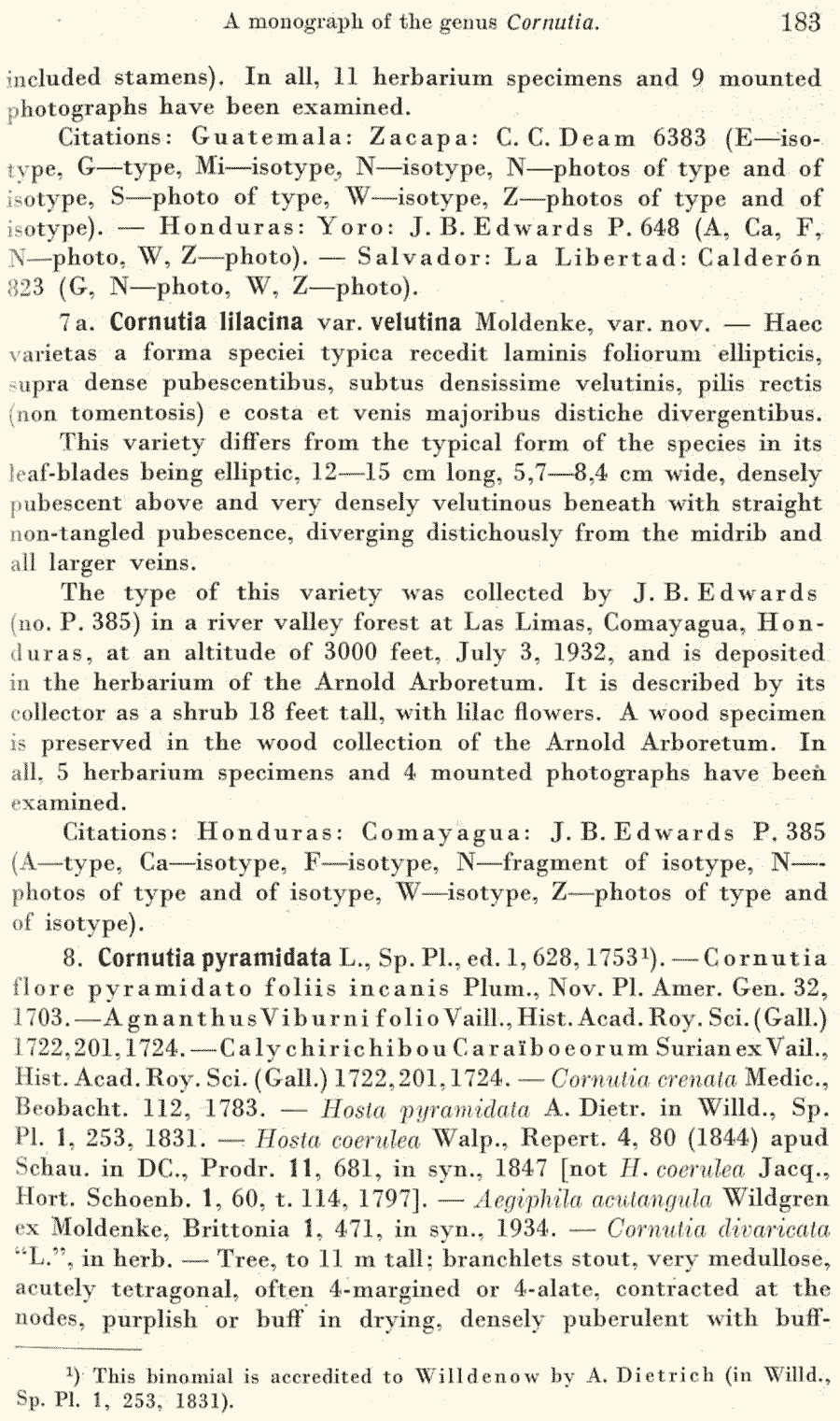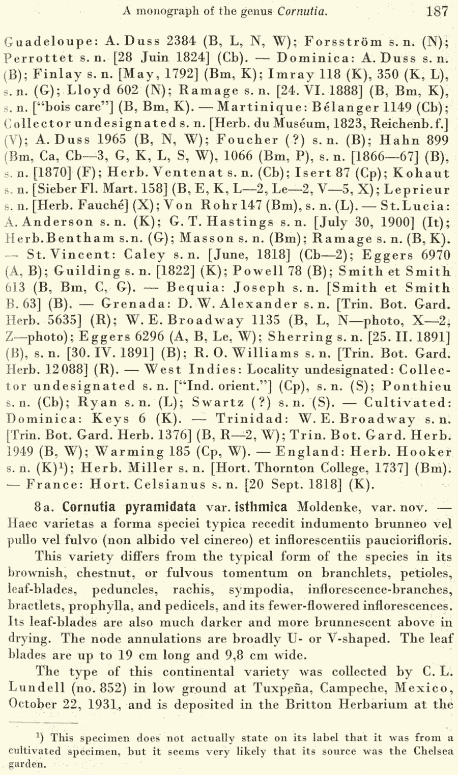 | Андрей Ковальчук | Протолог Cornutia pyramidata var. isthmica Moldenke (Repertorium Specierum Novarum Regni Vegetabilis 40(11–19): 187. 1936 [30 Jun 1936]):