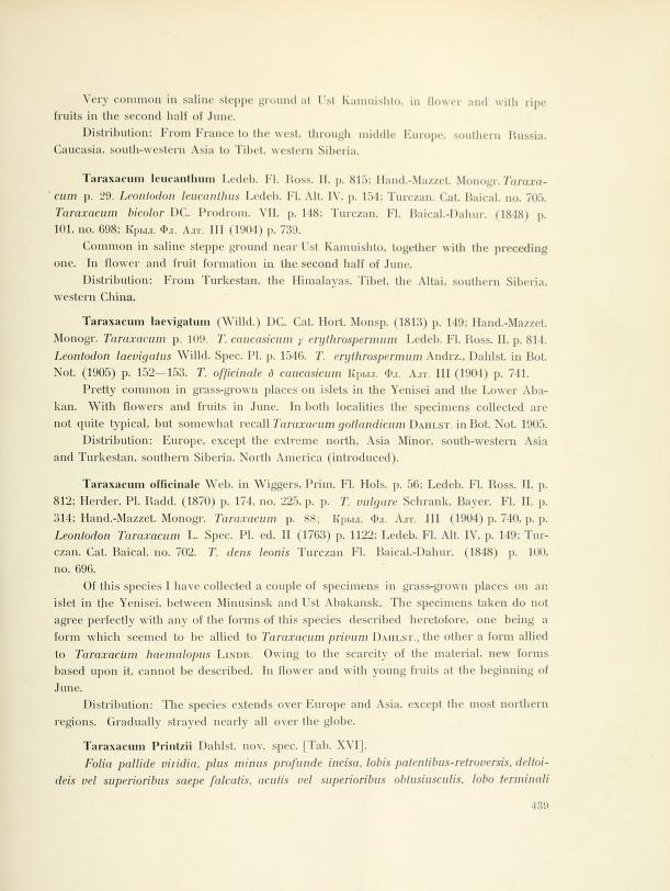 А то, что чехи записали в синонимы, не обязательно следует принимать. | | Александр Фатерыга | Виктор Кишиневский пишет:Правильное авторство Taraxacum printzii Dahlst. ex Printz, так как опубликован в работе Принтца с авторством Dahlst. Разве в подобном случае надо писать "Dahlst. ex Printz", а не просто "Dahlst." в смысле Dahlst. in Printz? | | Дмитрий Орешкин | Виктор Кишиневский пишет:Похоже Taraxacum printzii по непонятной причине оказался в синонимах Taraxacum scariosum.